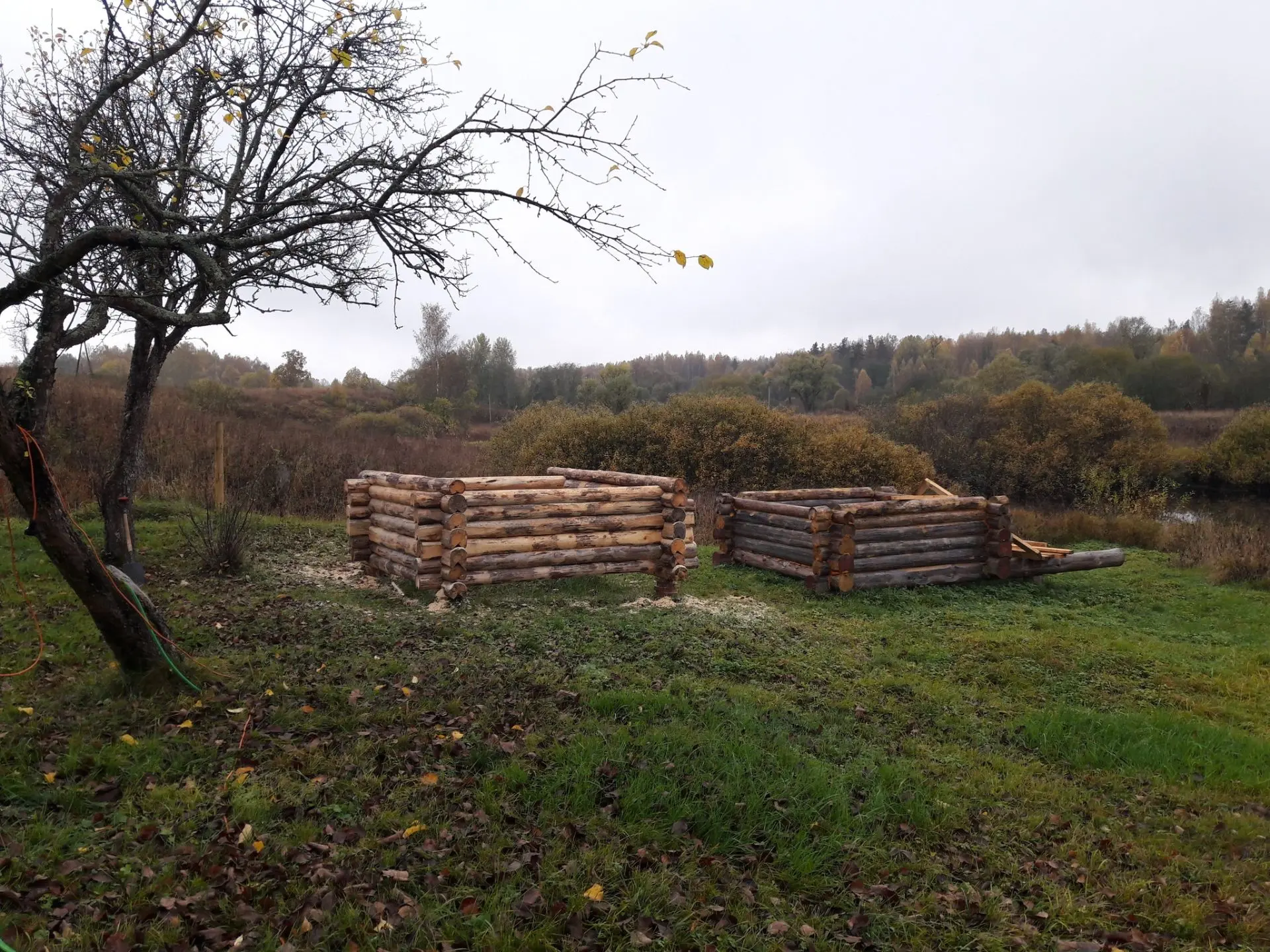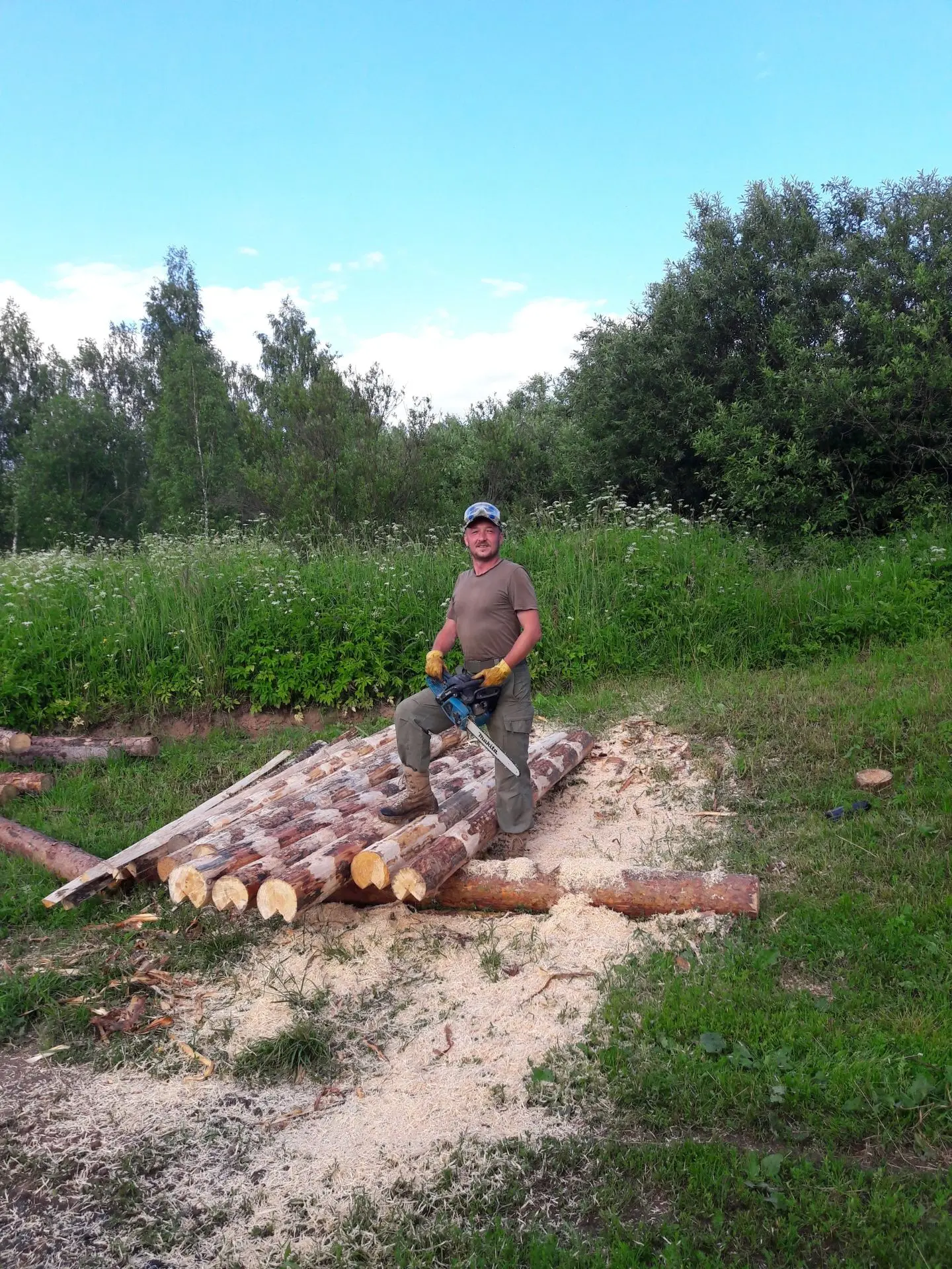 Началось всё с кучи брёвен некондиционной сосны, безвозмездно привезённых местным лесорубом. А так как домик в деревне у меня есть, а бани нет, то значит надо её построить.