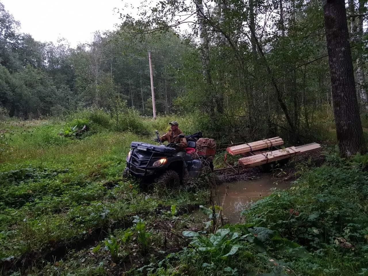 Выбрал место в глуши, все материалы приволакивал квадрциклом т.к. все отказывались доставлять туда грузы.