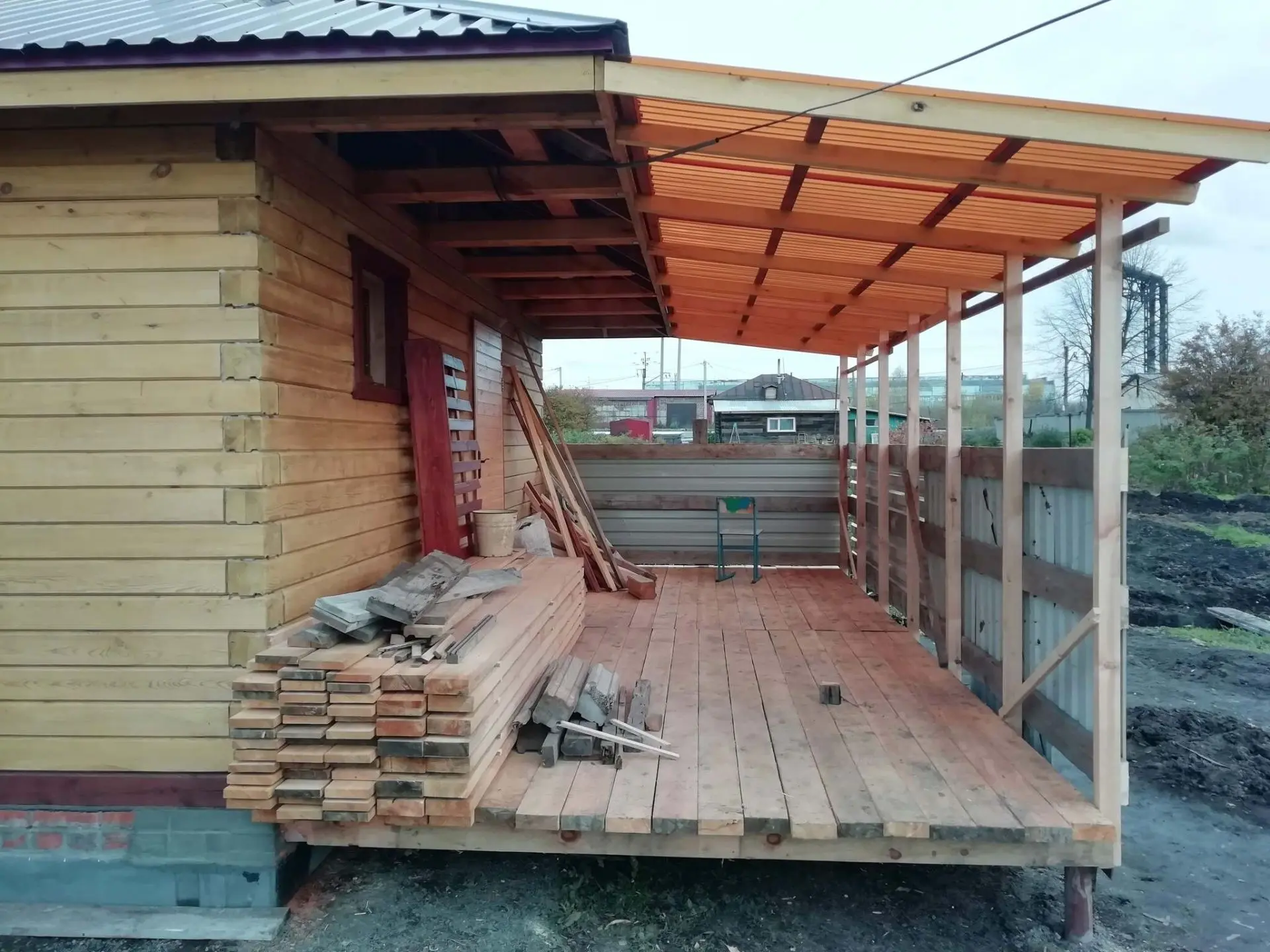В 2023 году родилась дочка и времени строить стало сильно меньше. Смог доделать веранду да и в принципе завершить стройку бани.