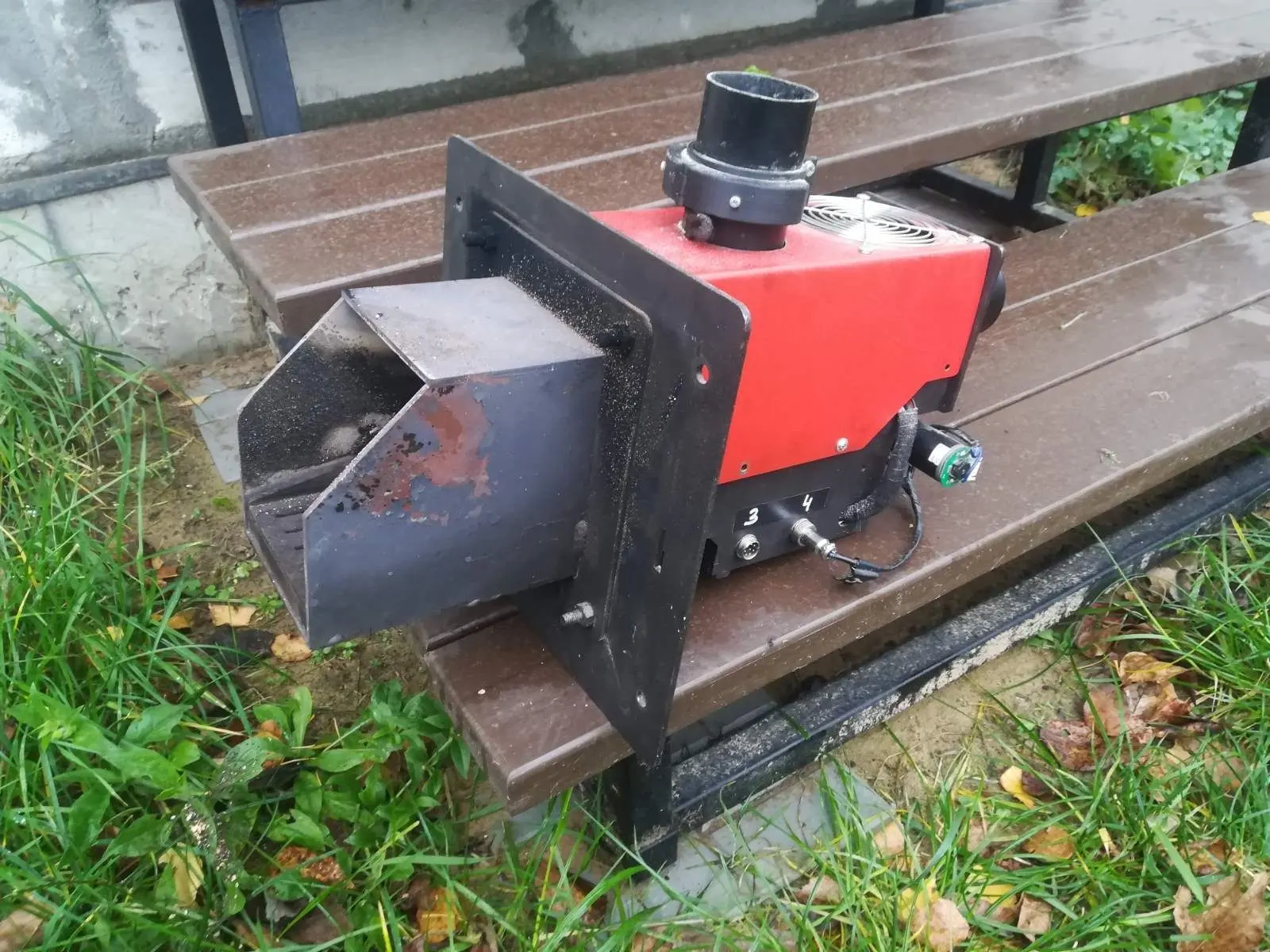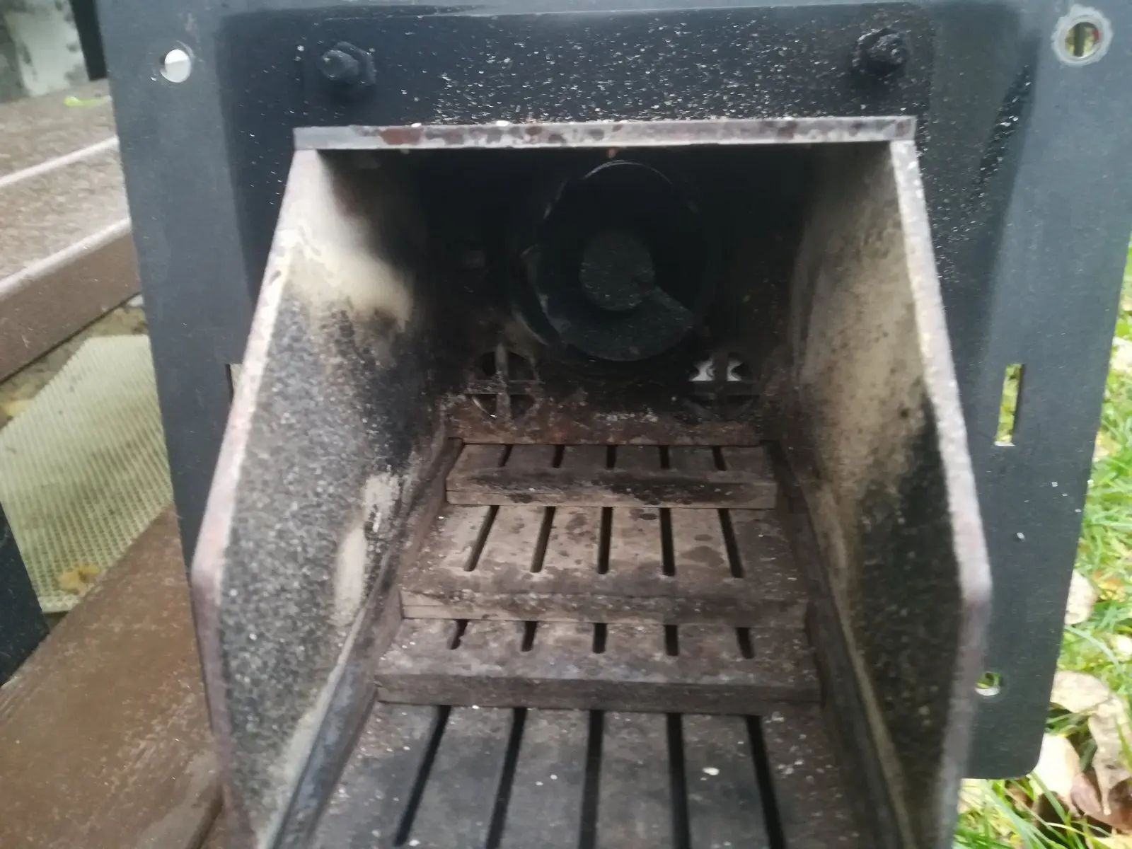 Было решено купить один из самых распространенных дешманских котлов на рынке и поместить его в будку из профнастила на отшибе участка. Наступило лето, схватился за сварочник и своими кривыми лапами сварил будку. Затем засунул котел в будку и собрал обвязку котла. В итоге получилась пеллетная горелка.