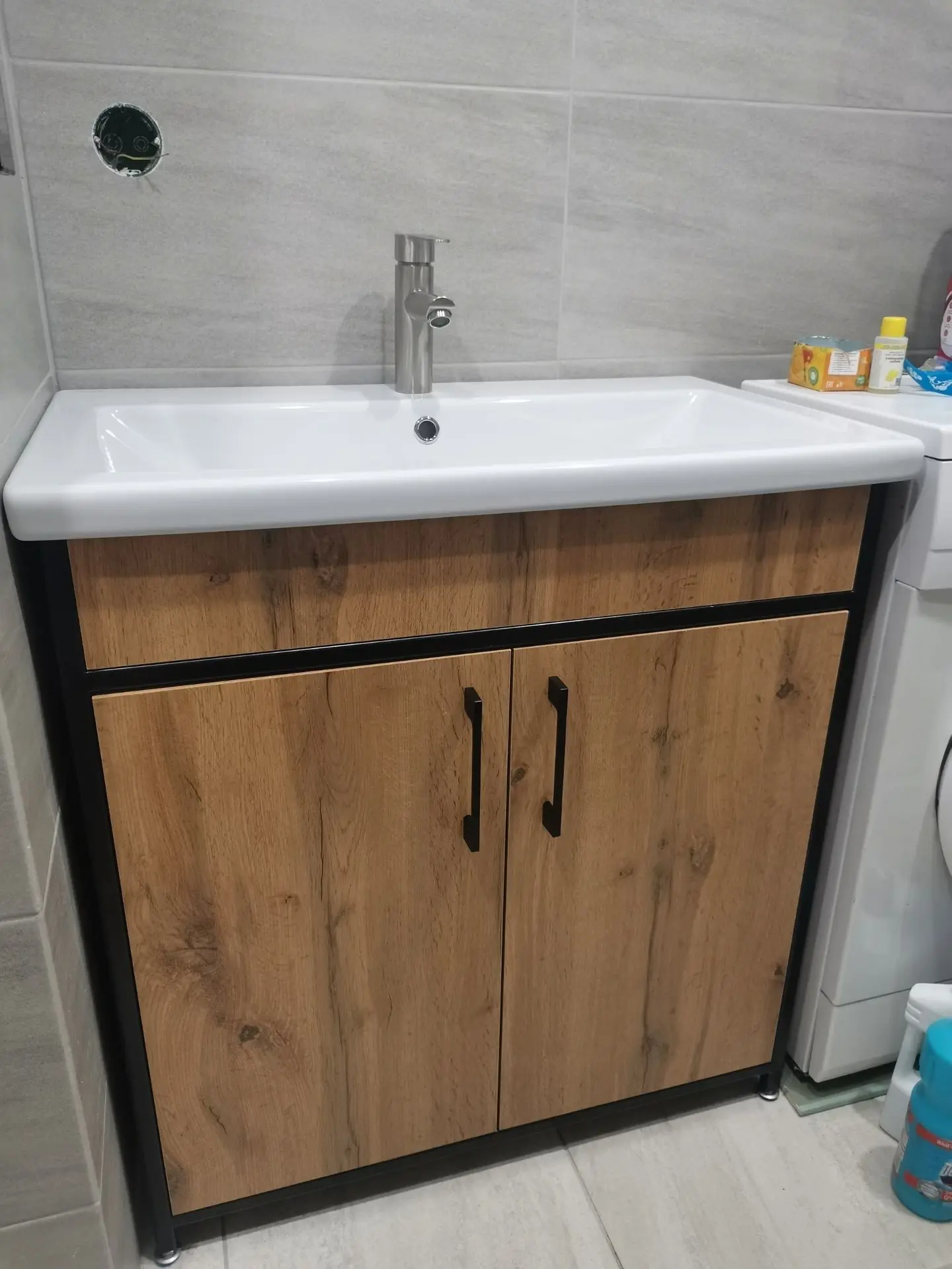 А самое интересное, в планах вообще не было указано розетки в ванной комнате.