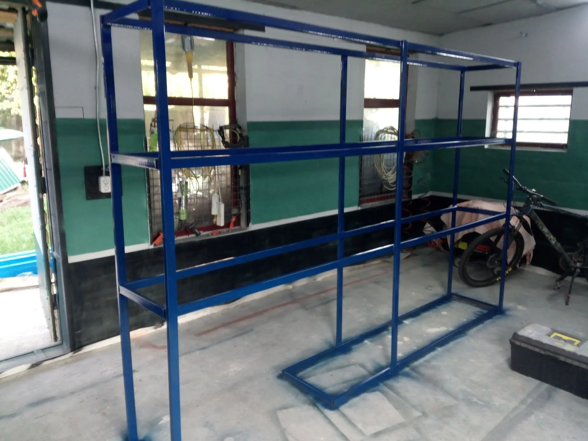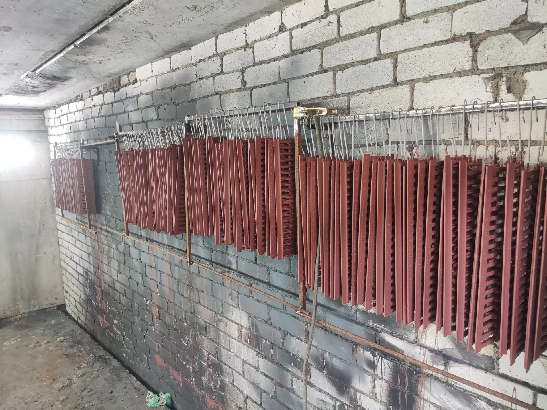 Пистолетом красить не очень хотелось, зато давно хотел попробовать покрасить что нибудь методом окунания, но как то не приходилось) В съëмном гараже, по соседству с моим, из остатков прошлогодних креплений для покраски секций забора и разных остатков металла с улицы, собрал рамку для подвешивания решёток.