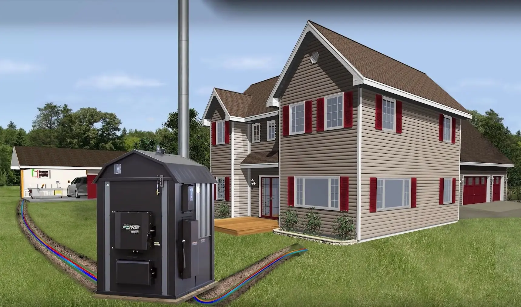 Тут, как назло, подвернулся ролик, как америкосы свои ранчо отапливают котлами, установленными под открытым небом: подходит чувак, открывает топку, кидает дрова, внутри греется вода, встроенный циркуляционный насос прокачивает нагретый теплоноситель через батареи дома и хозпостроек.