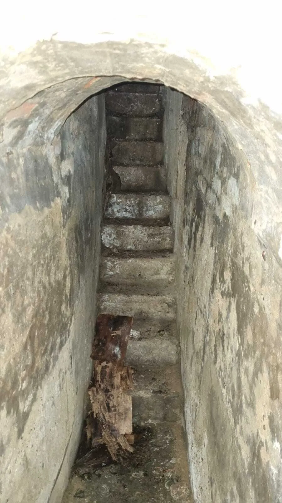 Залезли внутрь и обнаружили подвал, метра четыре глубиной с цилиндрической кирпичной кладкой.