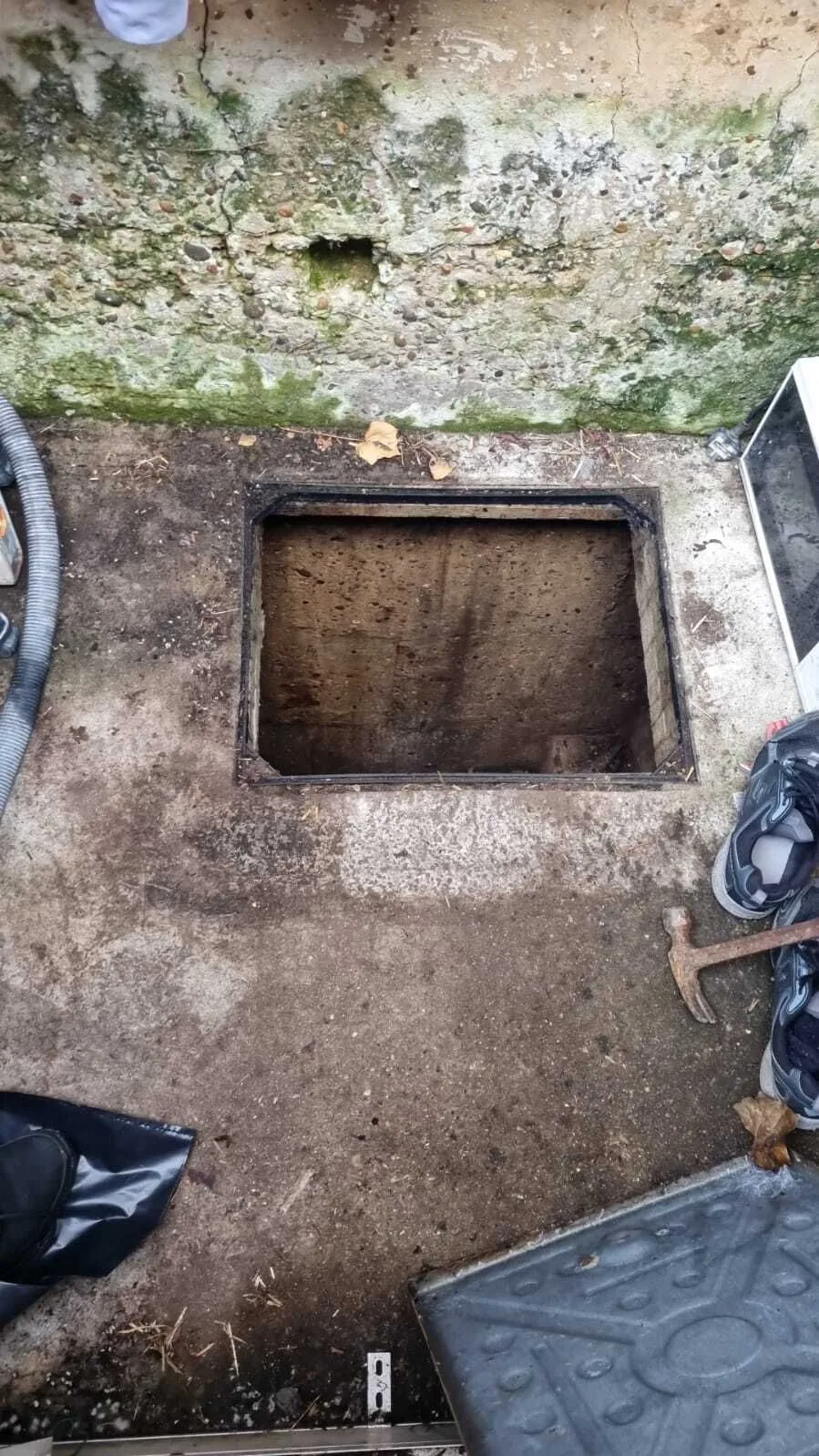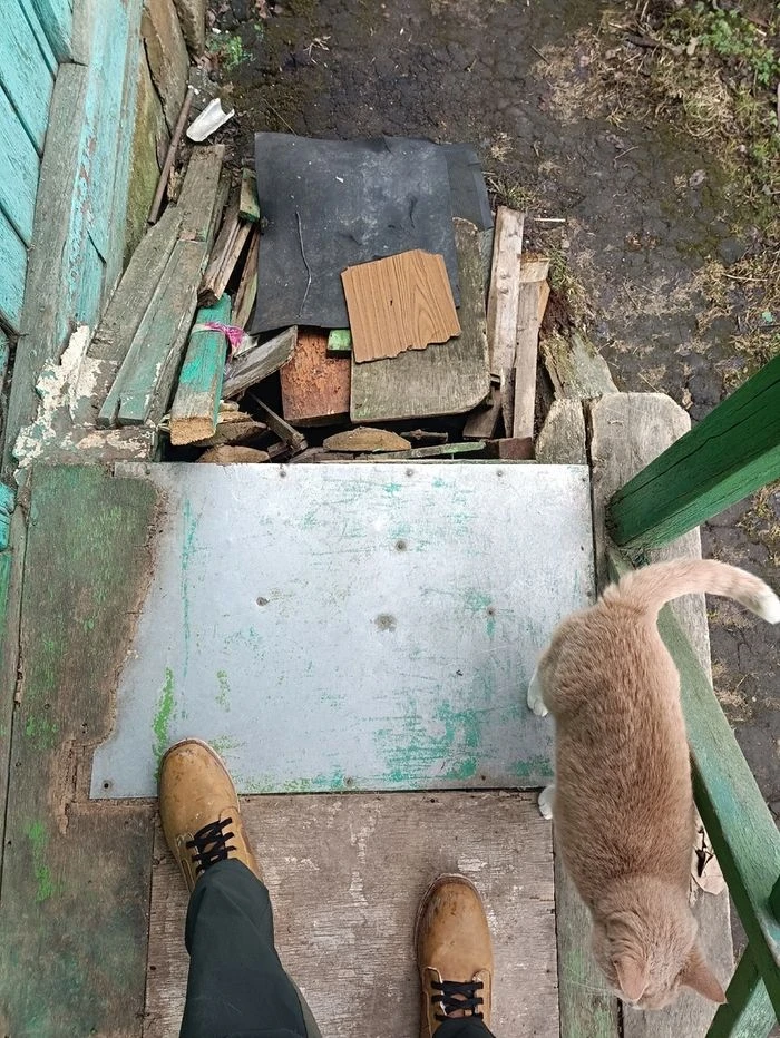 Пока он будет думать, мы решили раскопать траншею для фундамента под пристройку в конце участка. У них там стеклянная теплица стояла. Сломали теплицу, расчистили пол, нашли еще один неизвестный вход, закрытый до этого чугунной крышкой.