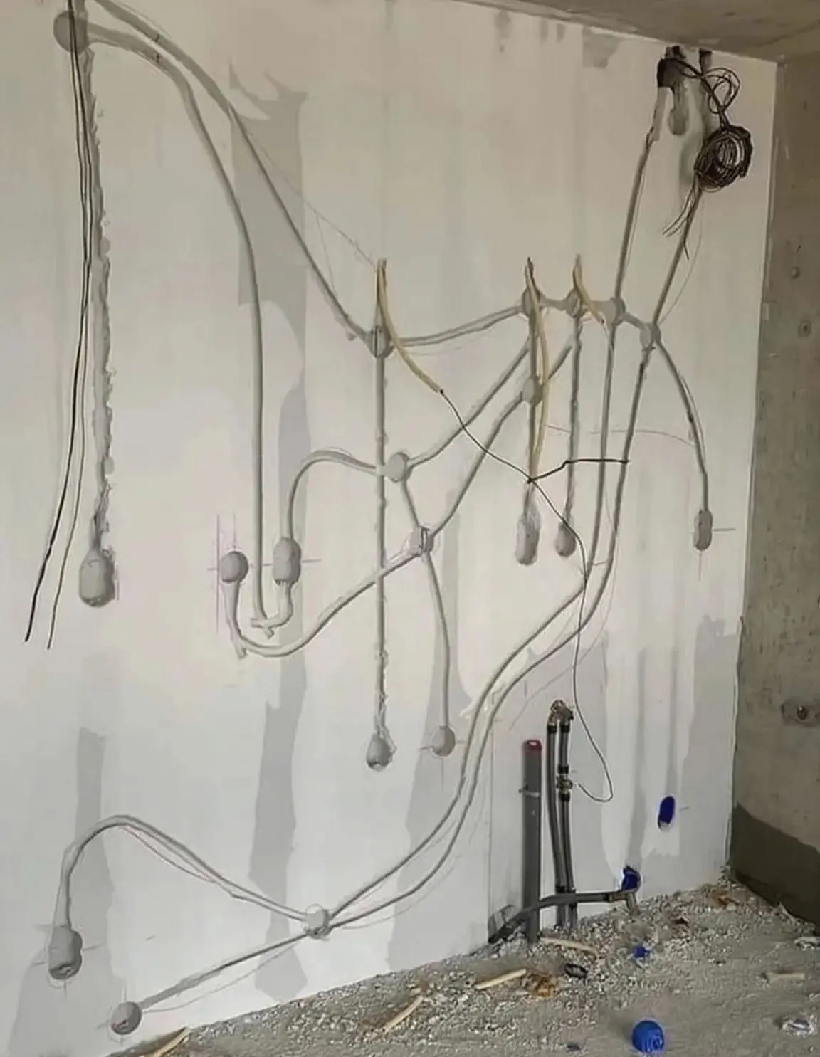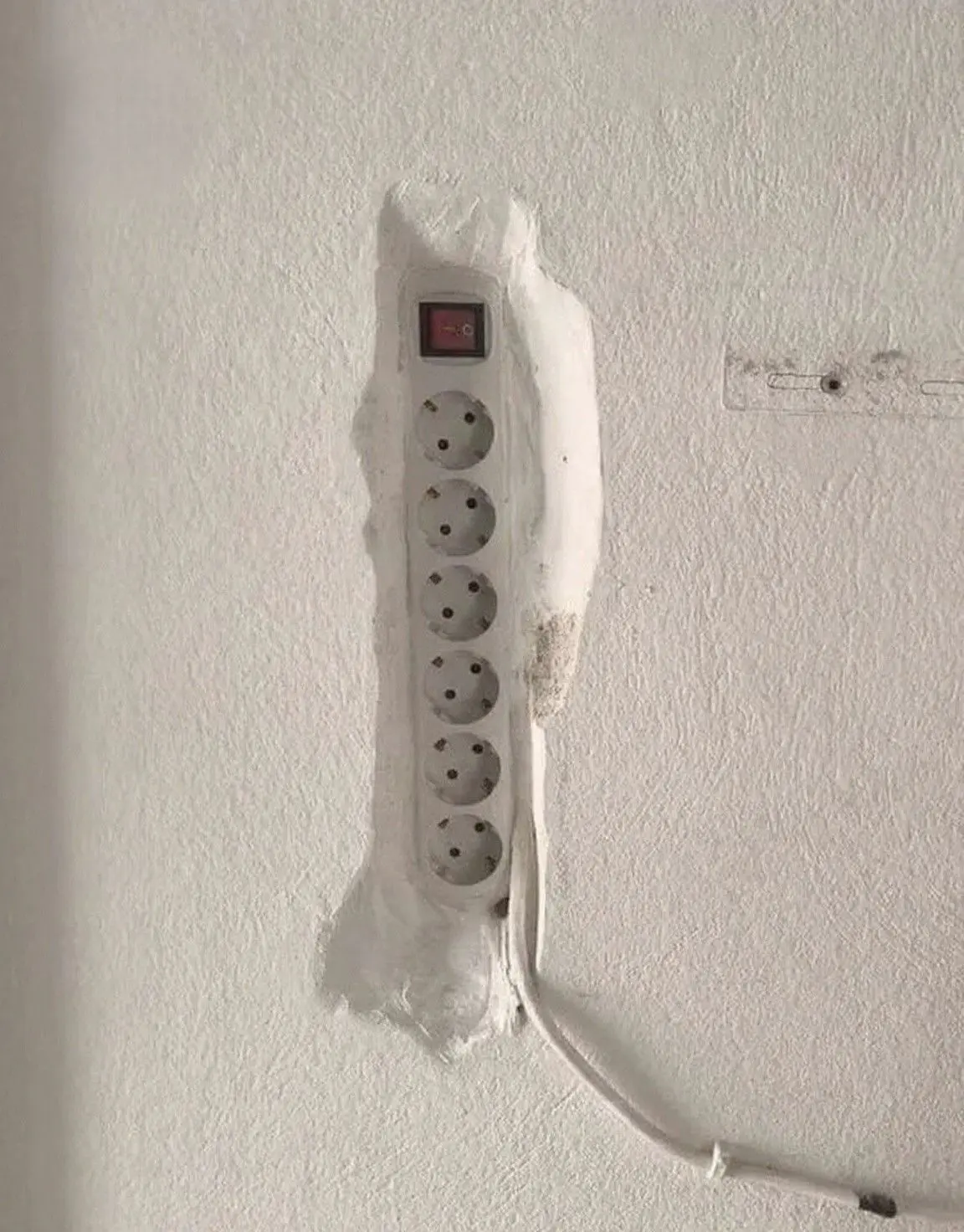 А подобные ситуации с наемными работниками - это не редкость. По количеству косяков отличился у нас электрик. Например, он, зачем-то, провел штробу, провод и просверлил отверстие для розетки над ванной в 1,5 метрах от пола.