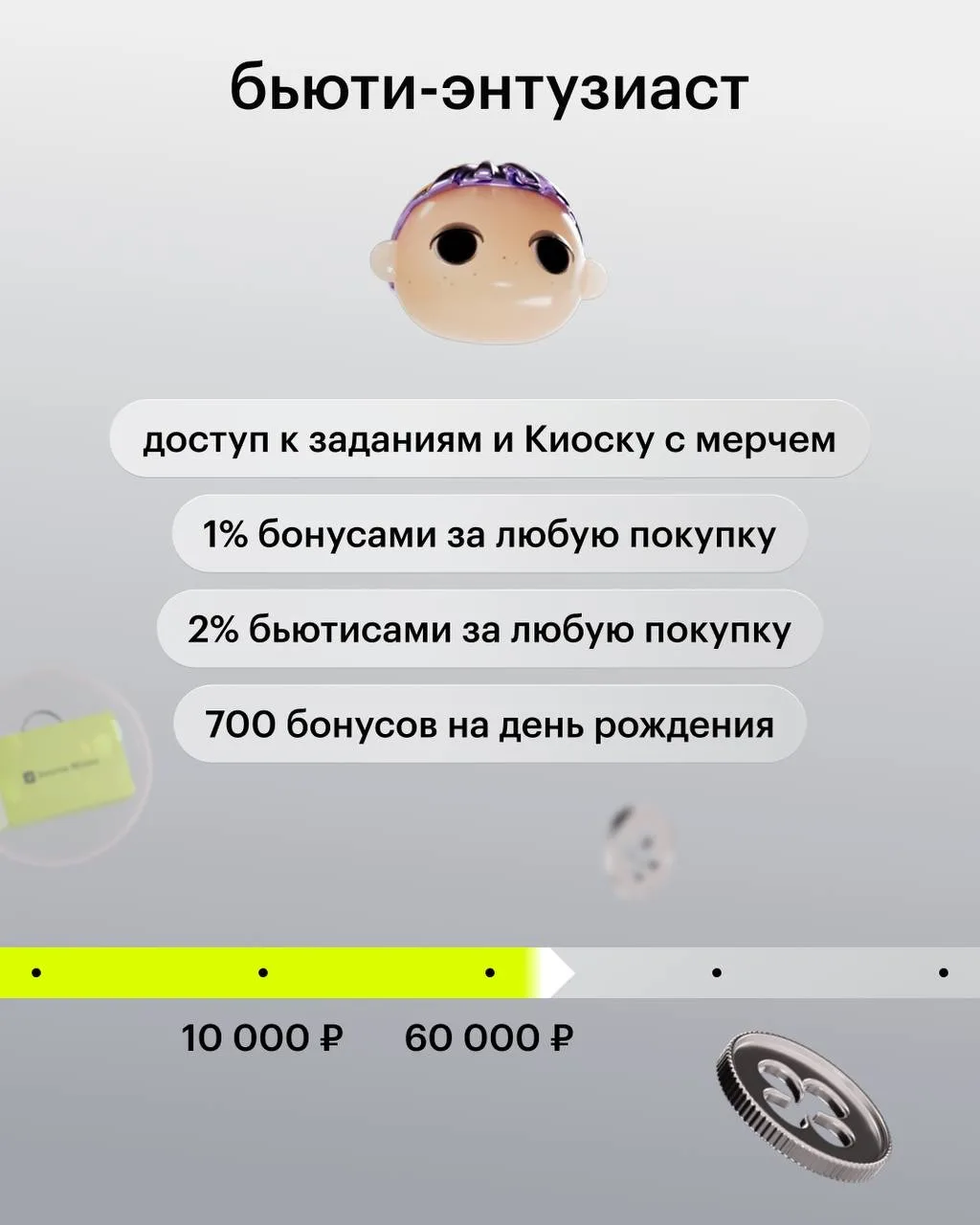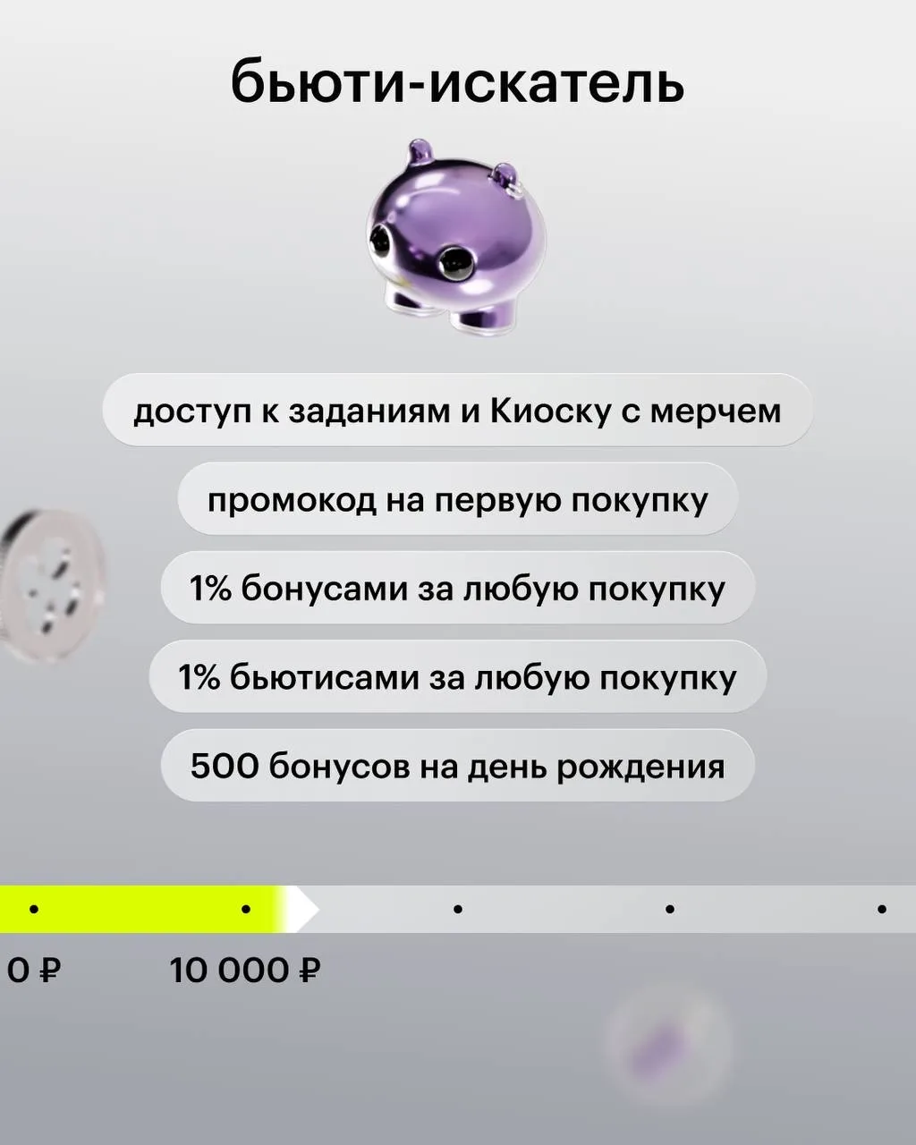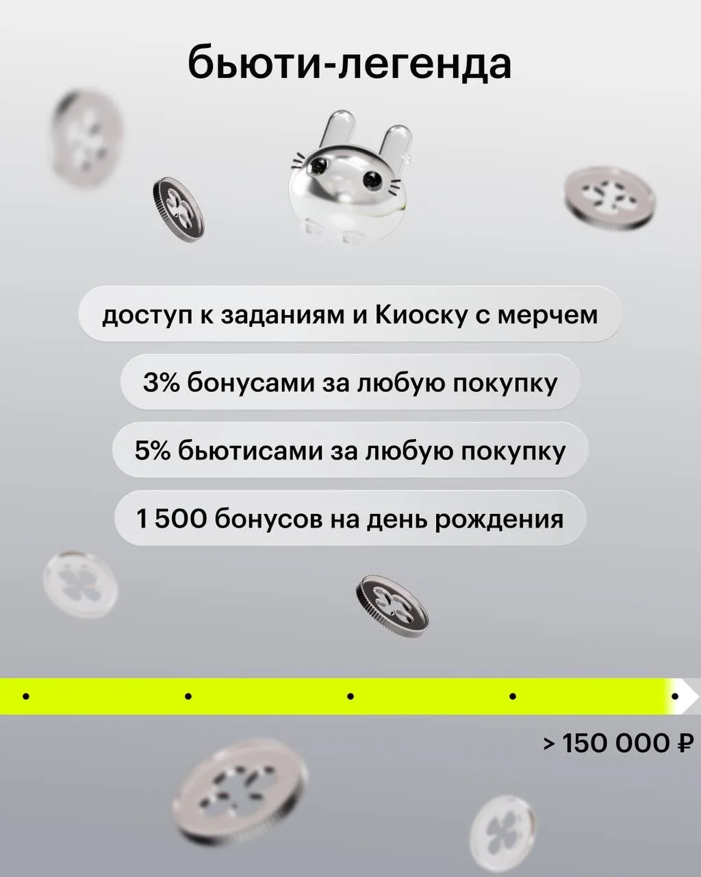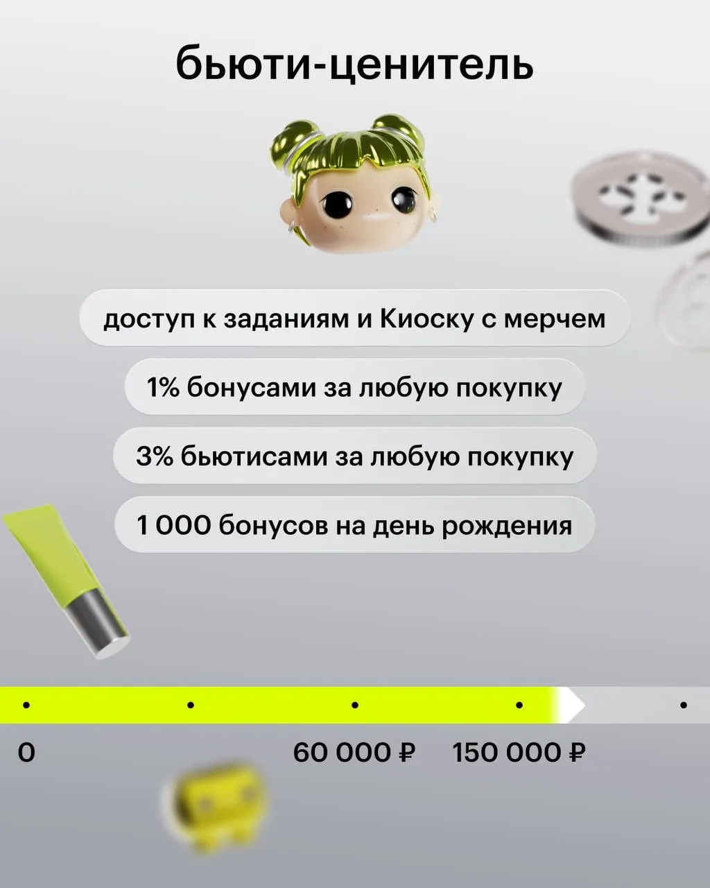 Теперь это настоящий Лаймовый клуб! Место, где шопинг превращается в приключение, а на каждом уровне тебя ждут награды и еще больше бонусов. Заходи в приложение и узнавай свой статус в Лаймовом клубе: бьюти-искатель, бьюти-энтузиаст, бьюти-ценитель или бьюти-легенда. Чем больше покупок, тем выше твой уровень!