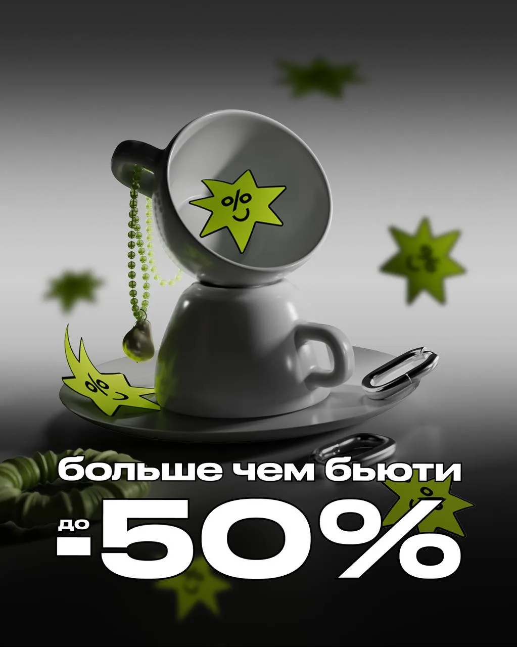 Загрузили скидки до −60% на сайте и в приложении. В нашем киберпространстве гигабайты косметики, терабайты крутой техники, сумок, украшений, одежды и не только. Осталось только собрать киберкорзину и применить промокод: