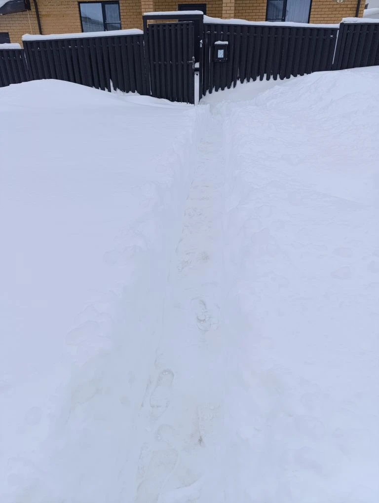 Высота снега почти с 2-х метровый забор.