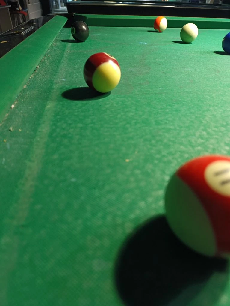 Бильярд выглядит так, как будто его принесли с ближайшей помойки. Шары все битые, кии не лучше, столы просто треш, шары из лунок падают на пол, либо вообще не вылетают- застревают в лунках, засохшая колбаса лежит рядом с мелком для кия, кстати, тоже единственным для всех столов.