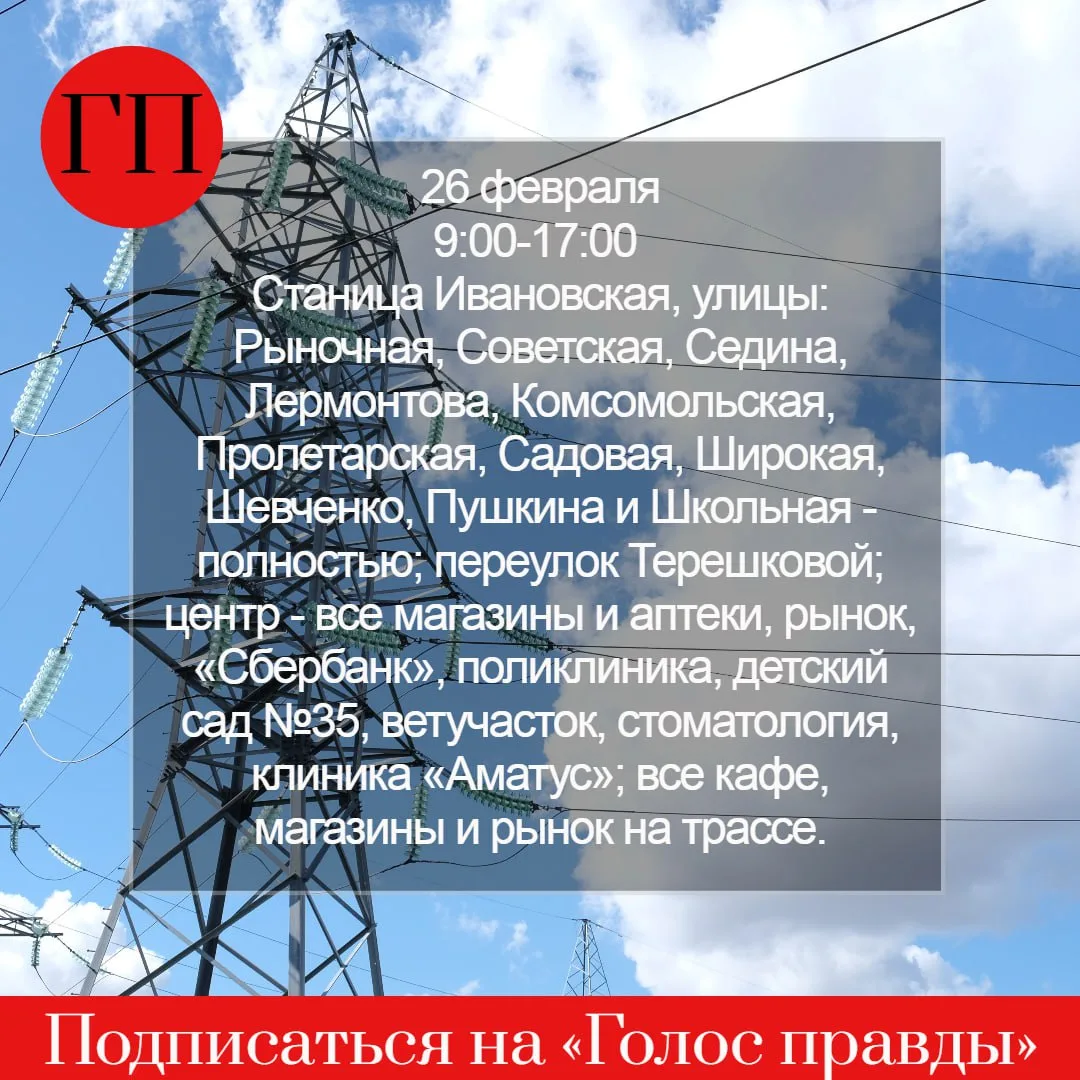 📍Горячая линия «Россети-Кубань»: