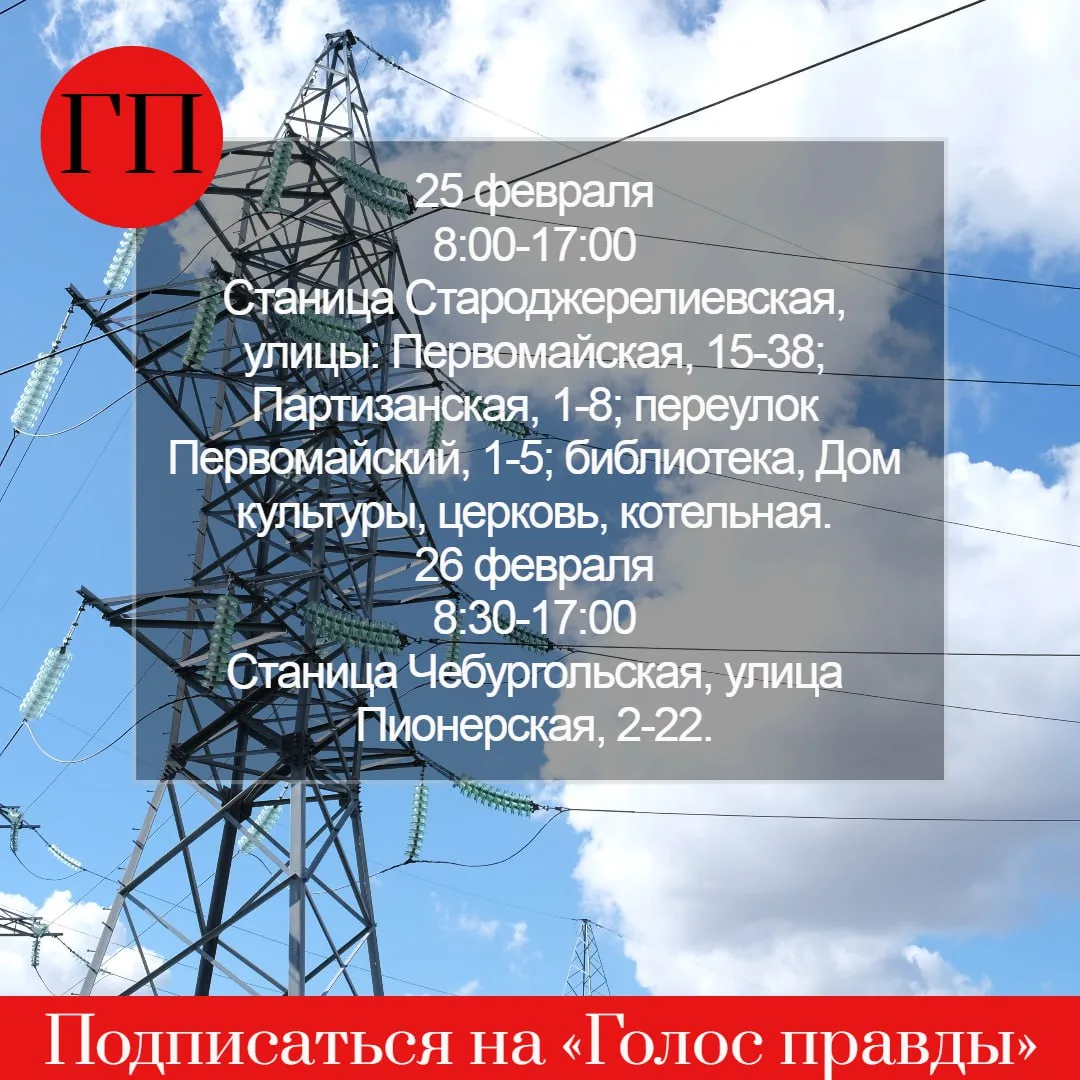 ⚡На еженедельной планерке в администрации района было озвучено, что без света находятся детсады № 2 (Полтавская) и № 3 (Старонижестеблиевская), школа № 29 (посёлок Мирный).