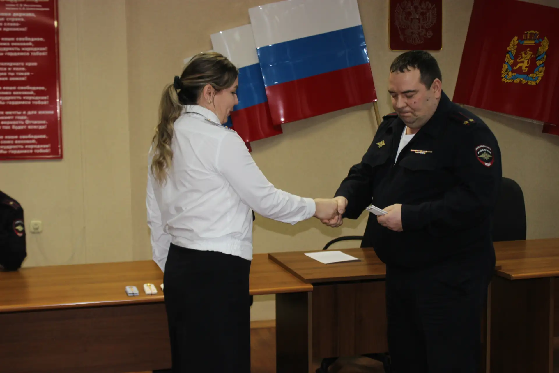Целой чредой вручения новых погон и повышения в званиях ознаменовалось первое занятие личного состава межмуниципального отдела МВД России «Бородинский» в наступившем году
