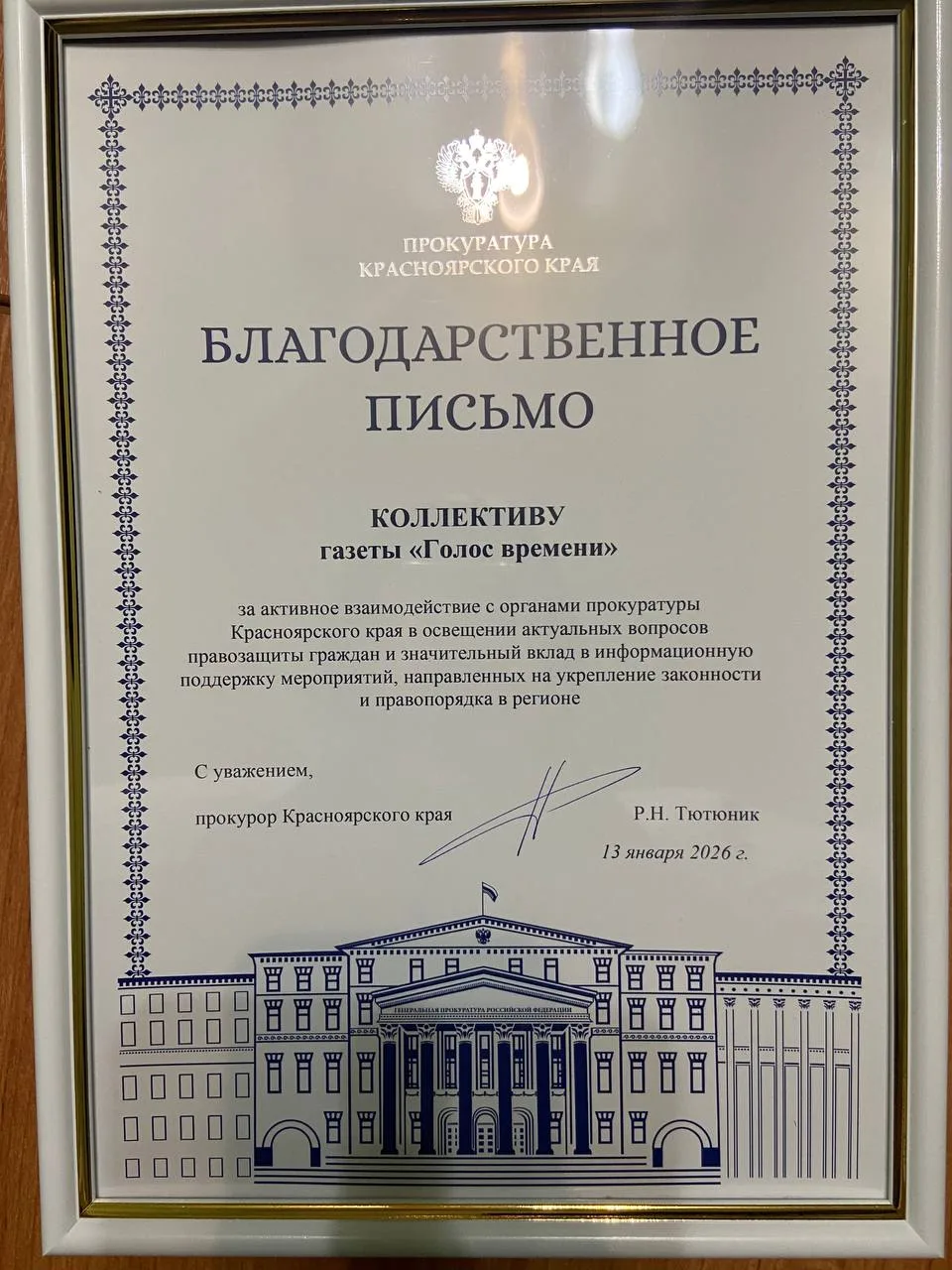 Коллективу редакции газеты "Голос времени" вручили Благодарственное письмо