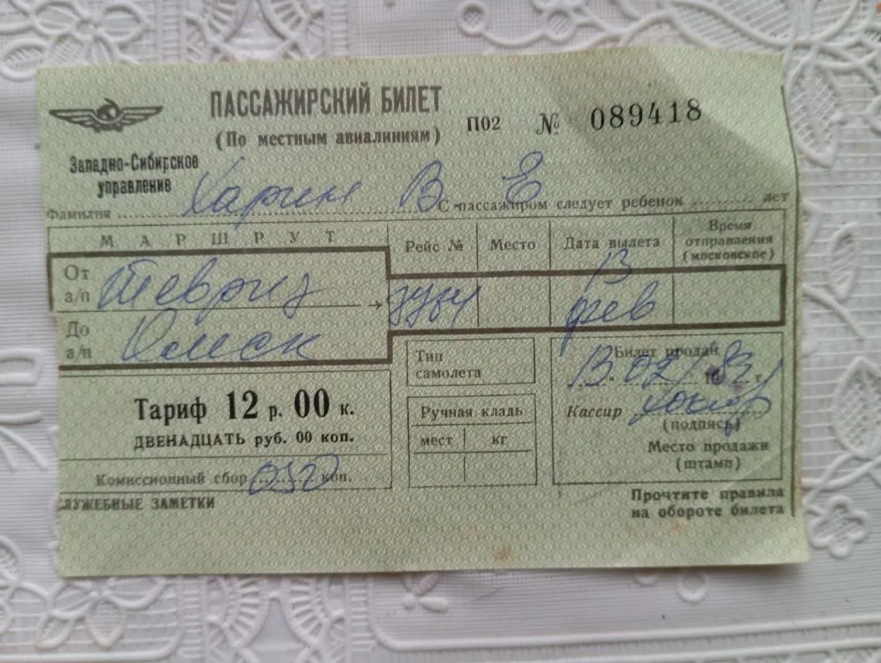 Рейс Тевриз - Омск, 12 рублей, 13 февраля 1983 года. Это смело можно считать раритетом!