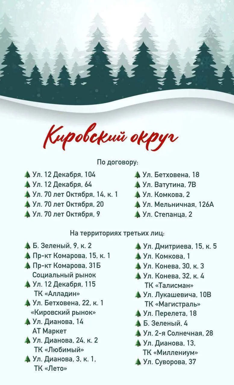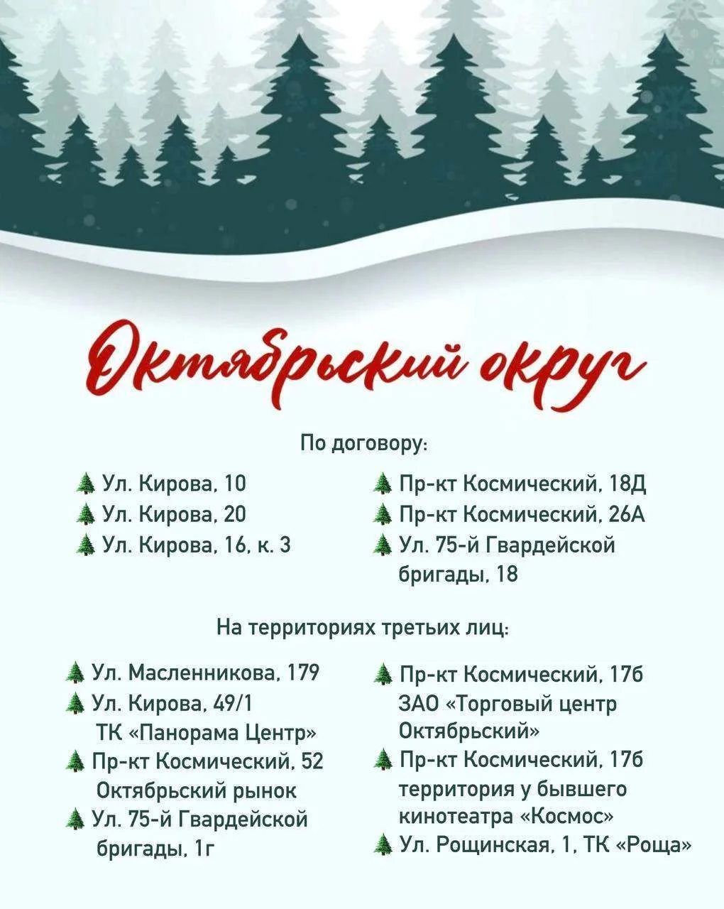 Массовые продажи стартуют с середины декабря. 40 елочных базаров разместят на муниципальных площадках в округах. 34 площадки — это территории торговых предприятий: магазинов, супермаркетов и гипермаркетов.