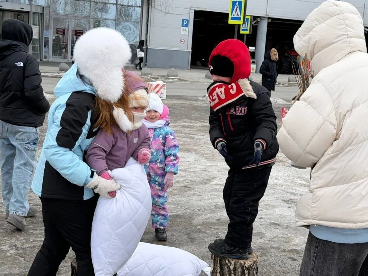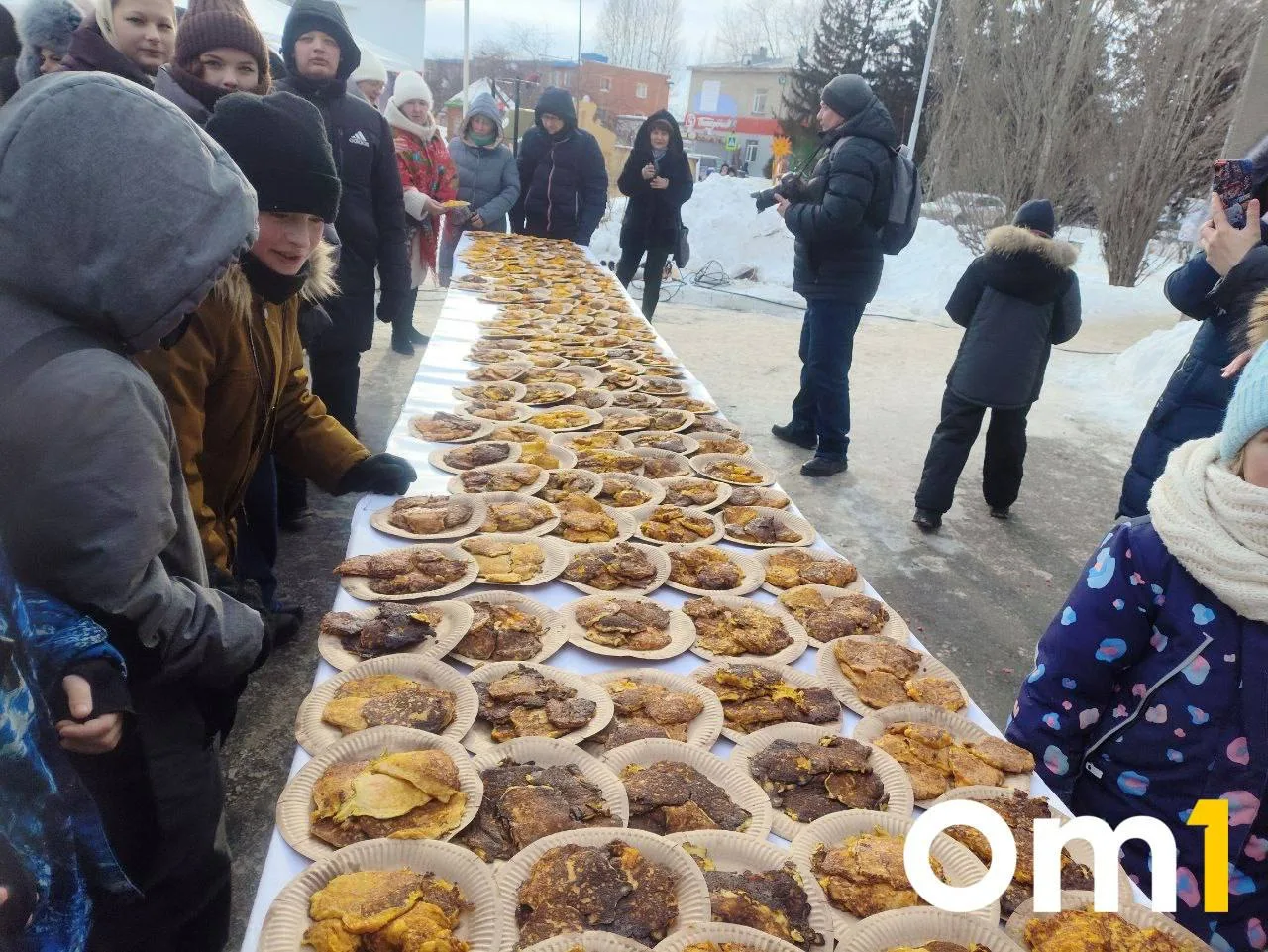 На Любинском проспекте толпы омичей стоят в очереди за бесплатными блинами 🔥