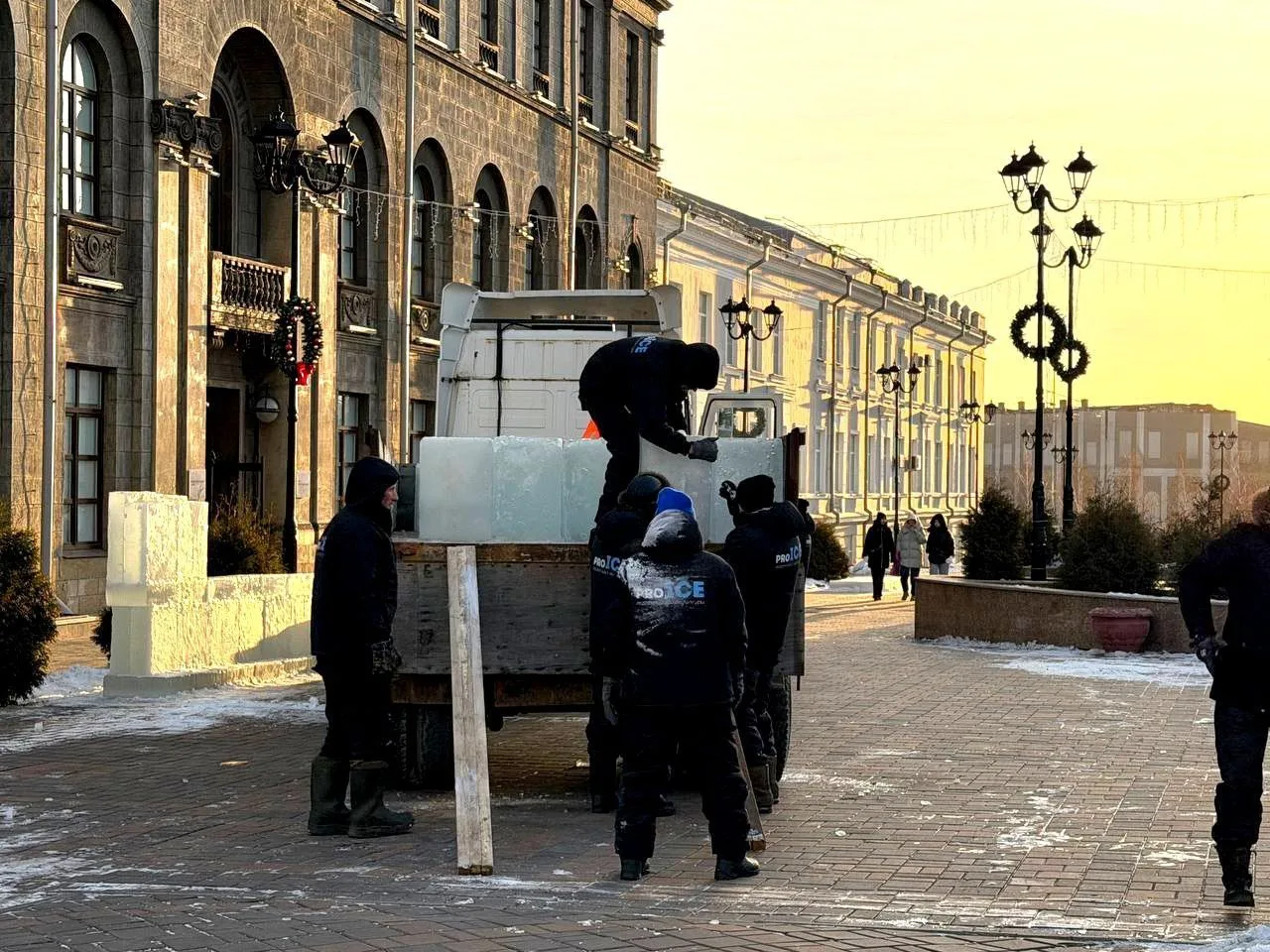 На Музейной разворачивают новогоднюю сказку — лед, ёлки и огромный подарок