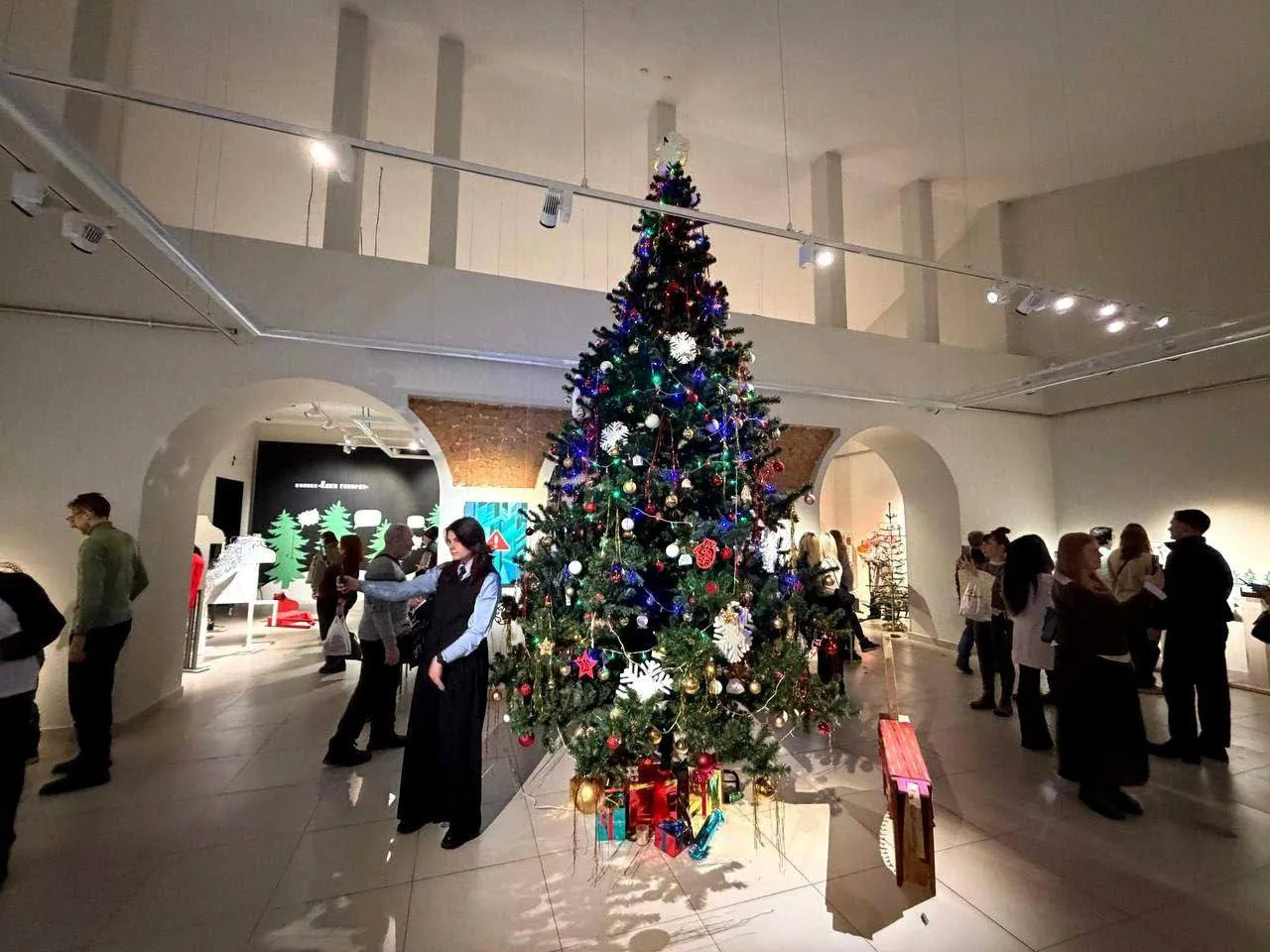 Пространство украсили новогодними гирляндами и установили яркую ёлку, чтобы создать по-настоящему праздничную атмосферу.
