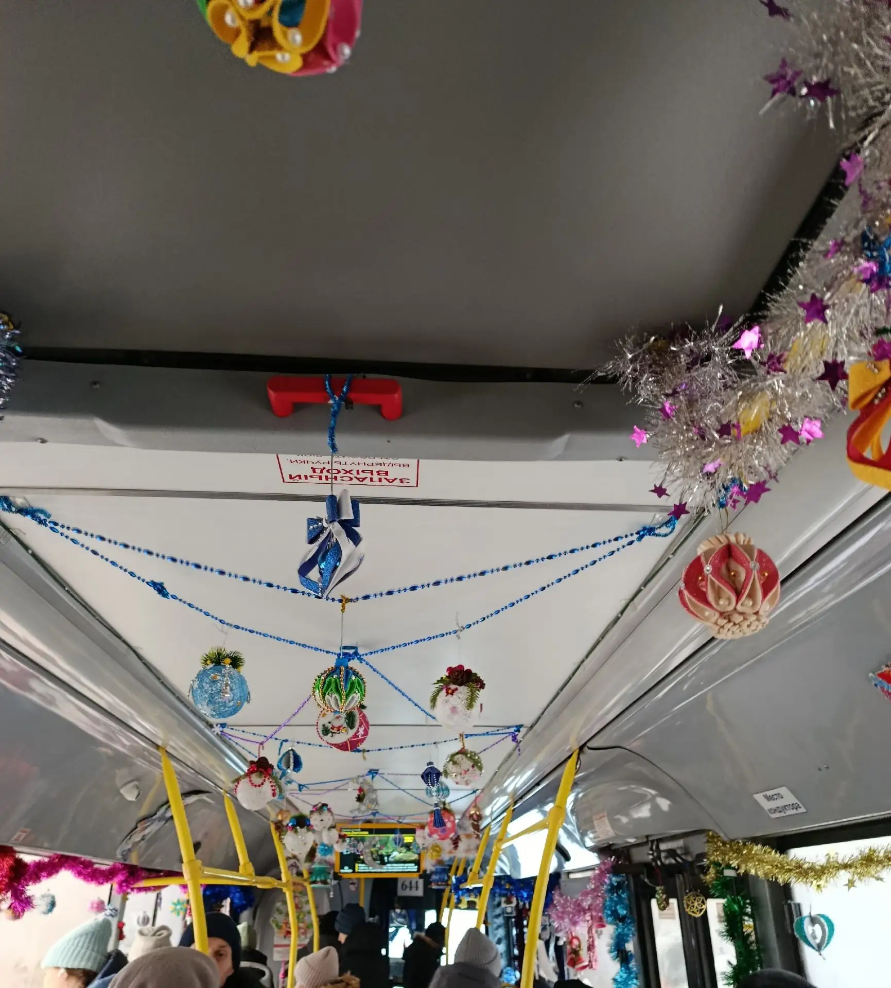 По словам горожан, в салон вложено невероятное количество труда, сил, терпения и собственных денег. Автобус украшен десятками игрушек — их, по ощущениям пассажиров, больше сотни. Хотелось рассматривать и фотографировать каждую.