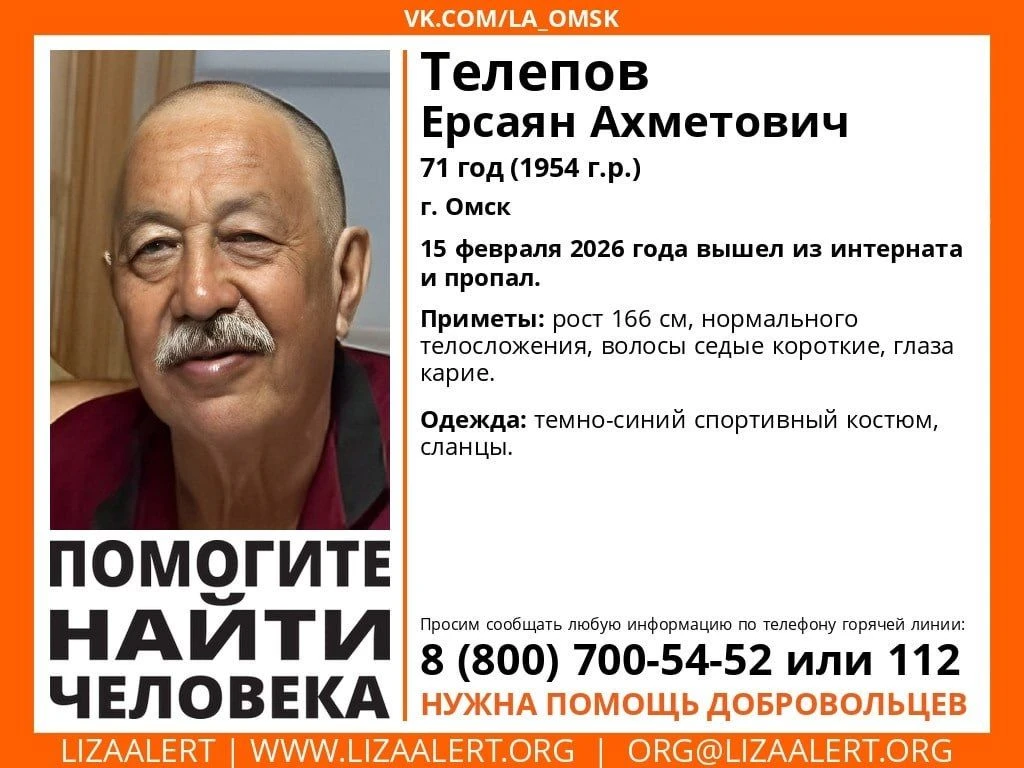 15 февраля 2026 года вышел из интерната и пропал. Если вы видели похожего человека, незамедлительно позвоните на горячую линию: 88007005452.