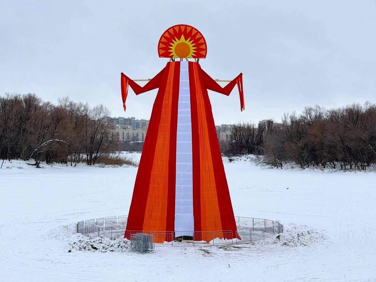 В это воскресенье, 22 февраля, Омск прощается с зимой с небывалым размахом. В парке «Вокруг света» установят гигантское чучело высотой более 16 метров — это абсолютный рекорд для нашего города. Конструкция настолько масштабная, что её оснастили специальной усиливающей секцией и огромным кокошником, украшенным символом солнца.