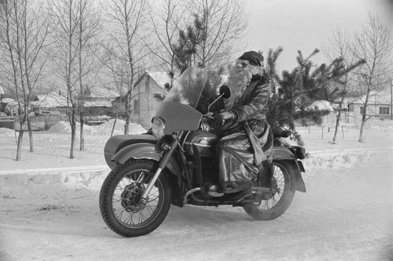 Мотоциклист в костюме Деда Мороза готовится к Новому году 🚀