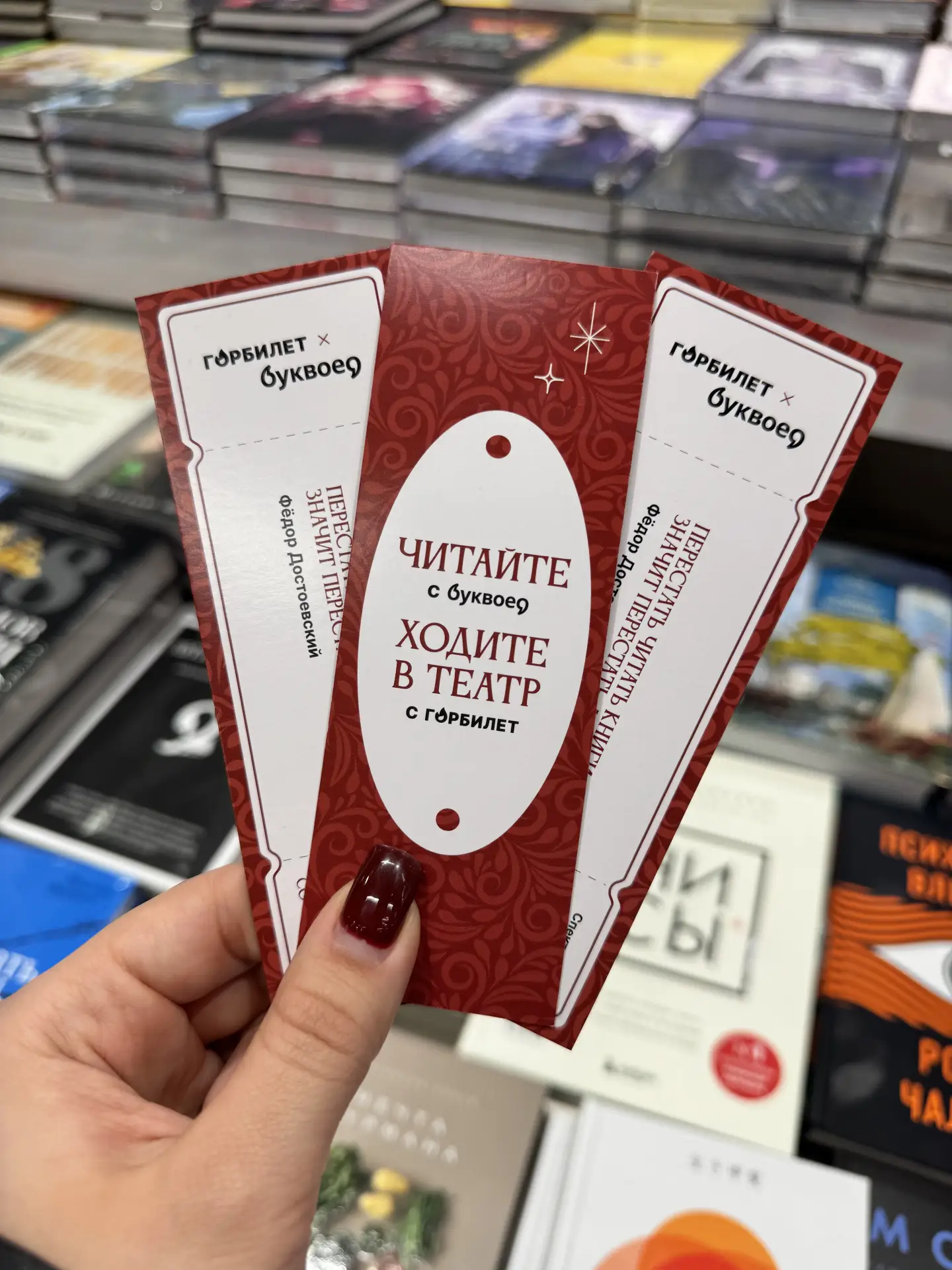 Ко Дню театра мы сделали лимитированные закладки с цитатами классиков вместе с «Буквоедом». Получить их можно в подарок при покупке в 10 магазинах сети: