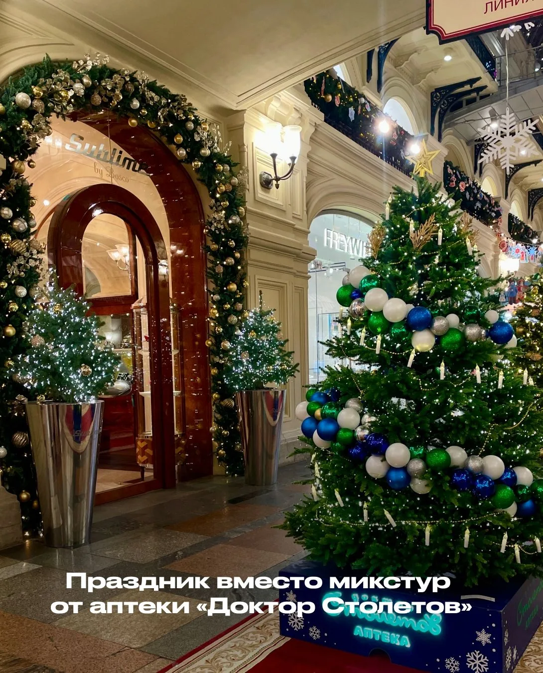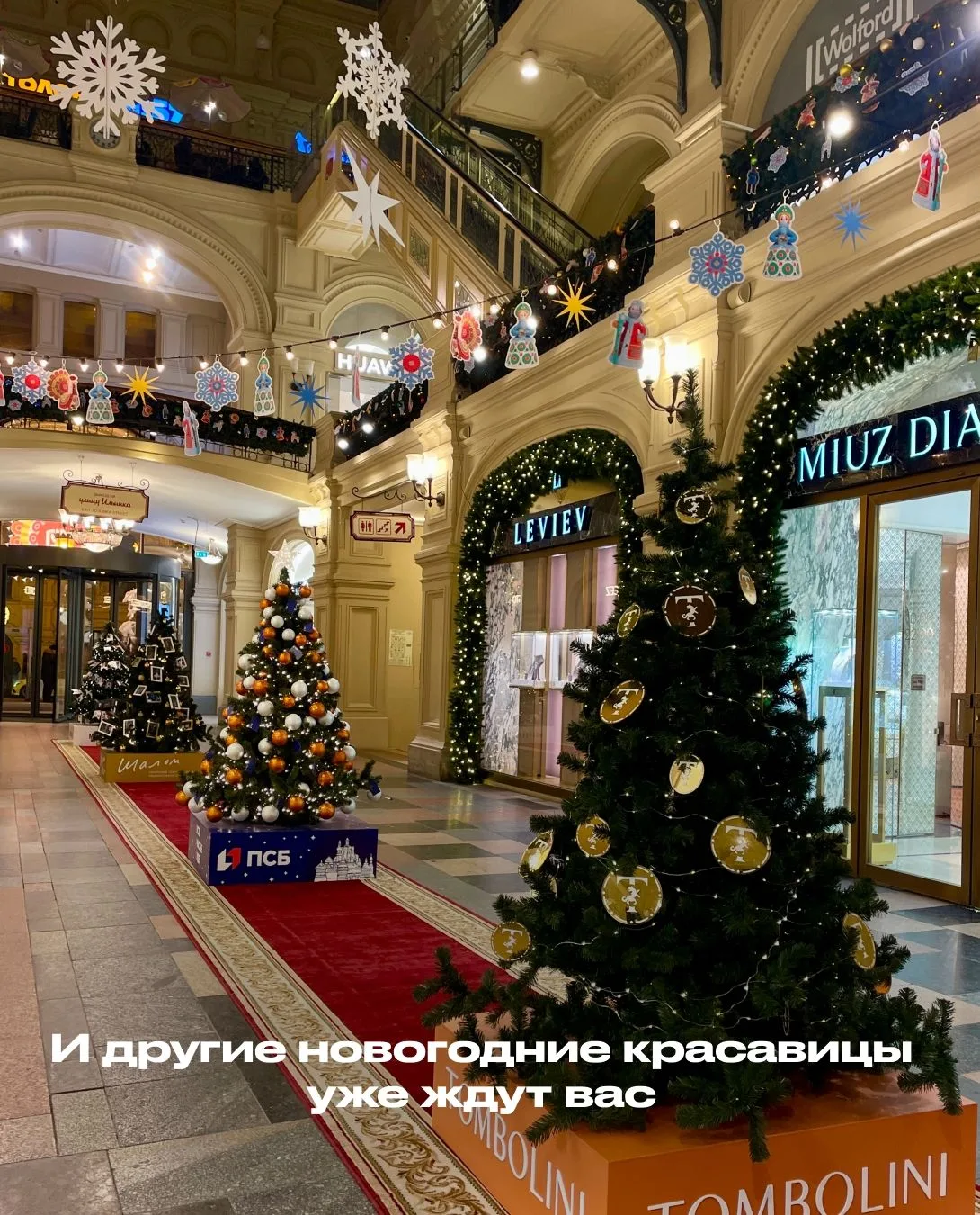 До середины января 2026 года в ГУМе открыта уже ставшая доброй традицией выставка «Новогодние ёлки в ГУМе на Красной площади».