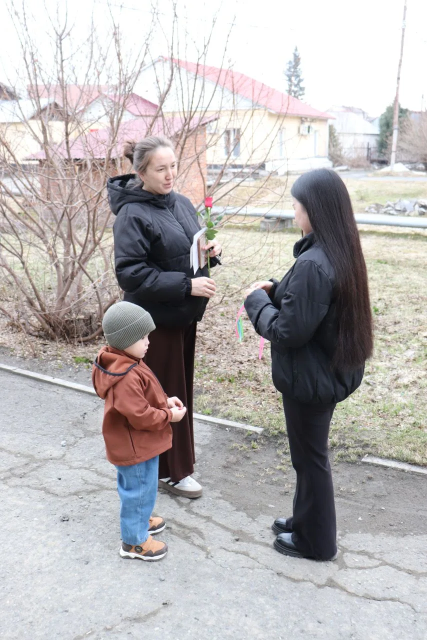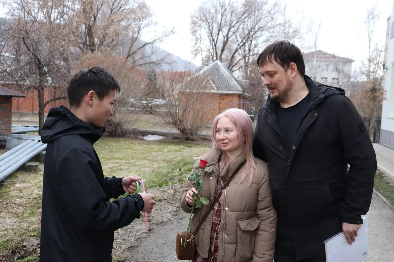 С утра у входа в женскую консультацию гостей встречал главный врач Перинатального центра Алексей Викторович Кухленко вместе с заместителем главного врача по клинико-экспертной работе, врачом-акушером-гинекологом Еленой Петровной Челушевой, студентами медицинского колледжа, представителями РОО «Женщины Алтая — Алтайдын Эпшилери» и коллегами из Центра общественного здоровья и медицинской профилактики Республики Алтай.