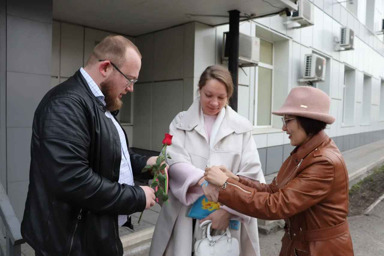 Каждой женщине вручили цветок и ленточку разных цветов для тех, кто ждёт сына, и для тех, кому скоро предстоит обнимать дочку. Главный врач пожелал будущим мамам лёгкой беременности, благополучных родов и счастливого родительства.