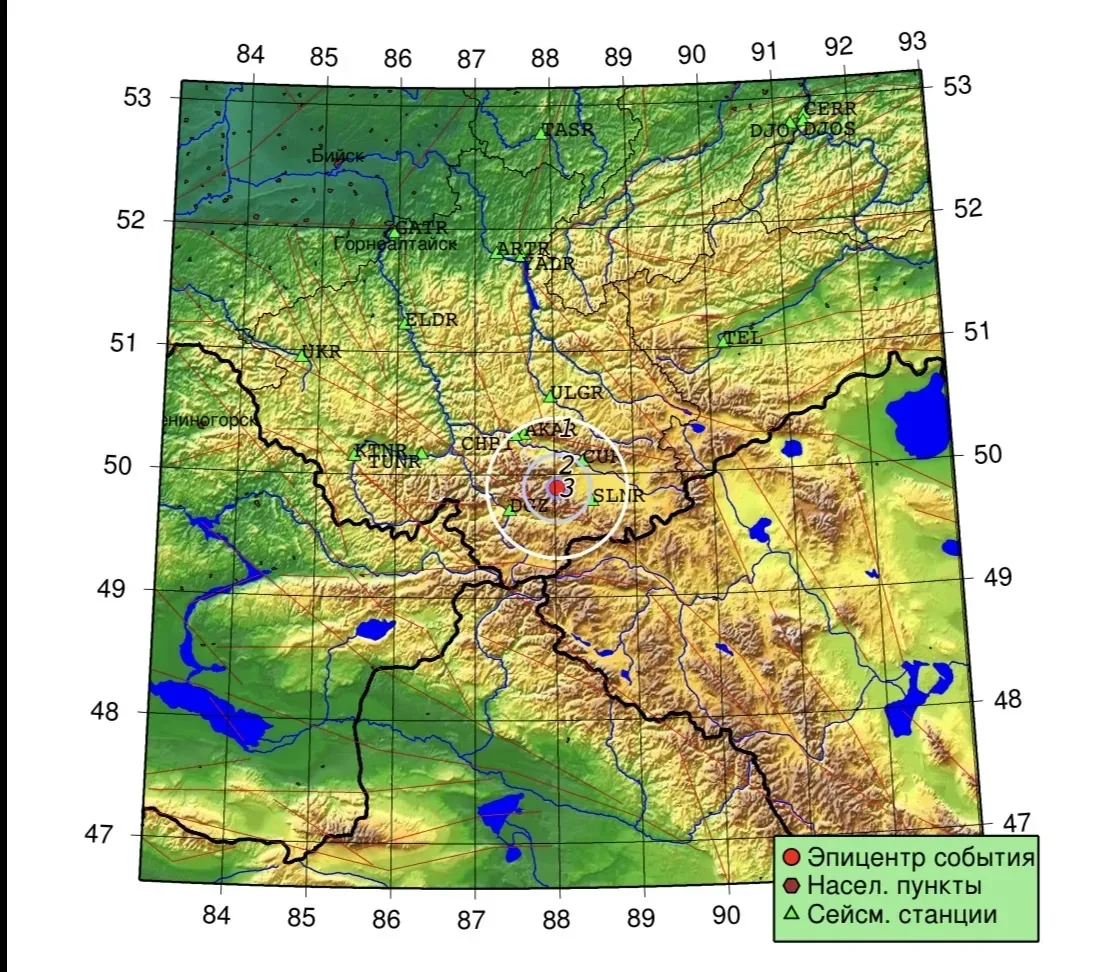 Сегодня в 15:10 в 10 километрах юго-западнее села Новый Бельтир Кош-Агачского района зарегистрировано сейсмическое событие – 3,9 магнитуды