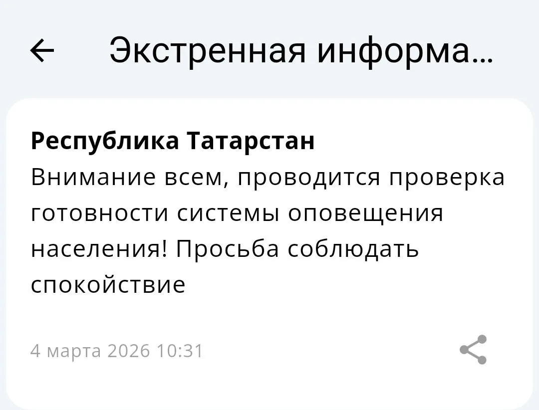 📣 Сегодня в Татарстане пройдёт проверка системы оповещения — жителей просят сохранять спокойствие.