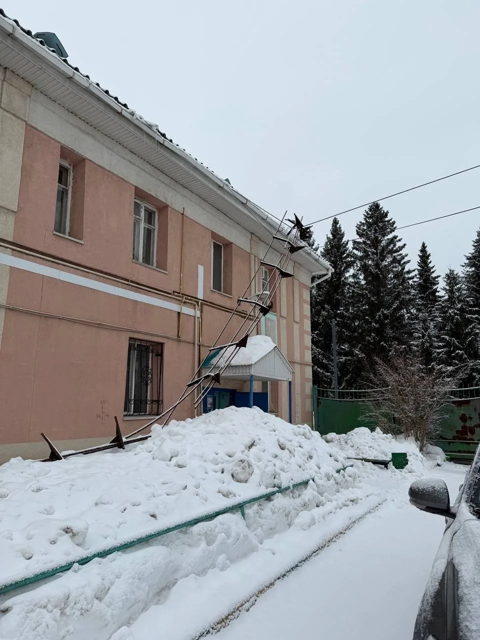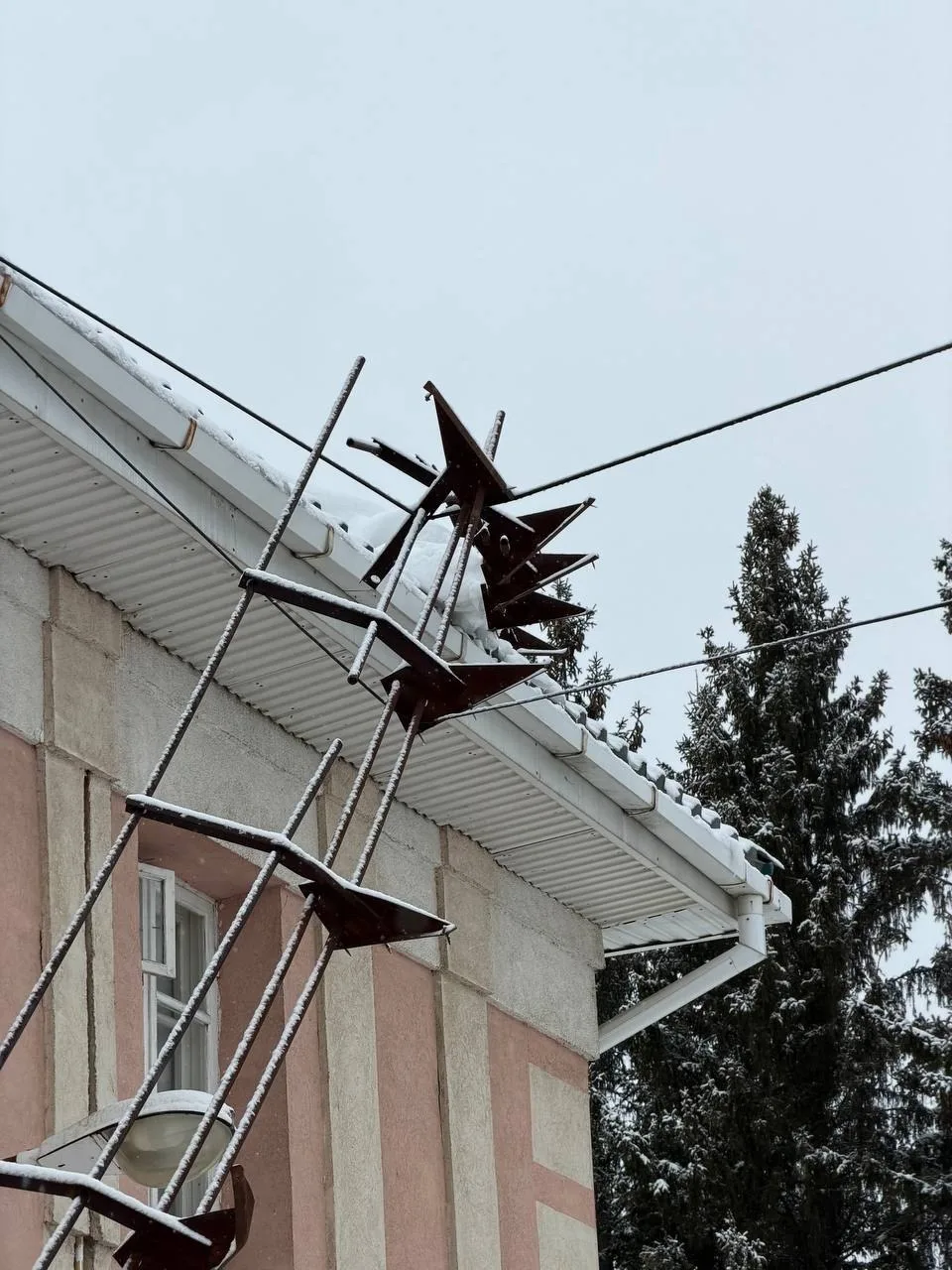 ❄️ На улице Чапаева, 1 — рухнувшие снегодержатели частично повисли на проводах, угрожая прохожим.