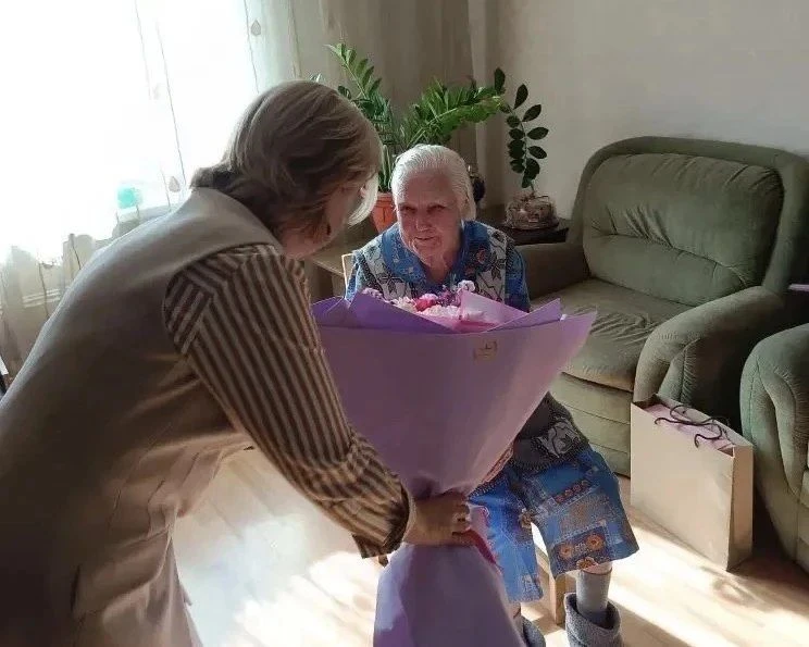 Александре Фёдоровне вручили поздравление от президента и памятный подарок.