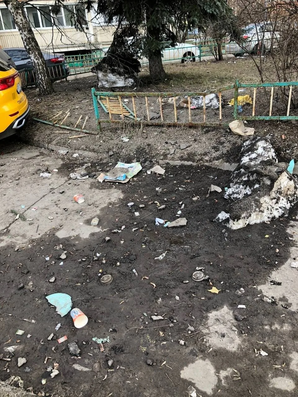 Водители паркуются на газонах и заезжают на пешеходную зону, несмотря на блоки и ограждения. В результате — кучи мусора и грязь, ходить невозможно.