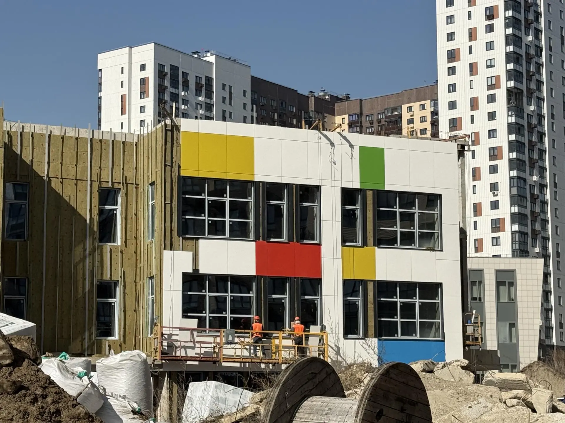На территории школы обустроят спортивную зону, зоны отдыха и учебно-опытный участок для занятий садоводством. Сейчас на объекте завершаются электромонтажные работы, отделка фасада и благоустройство территории.