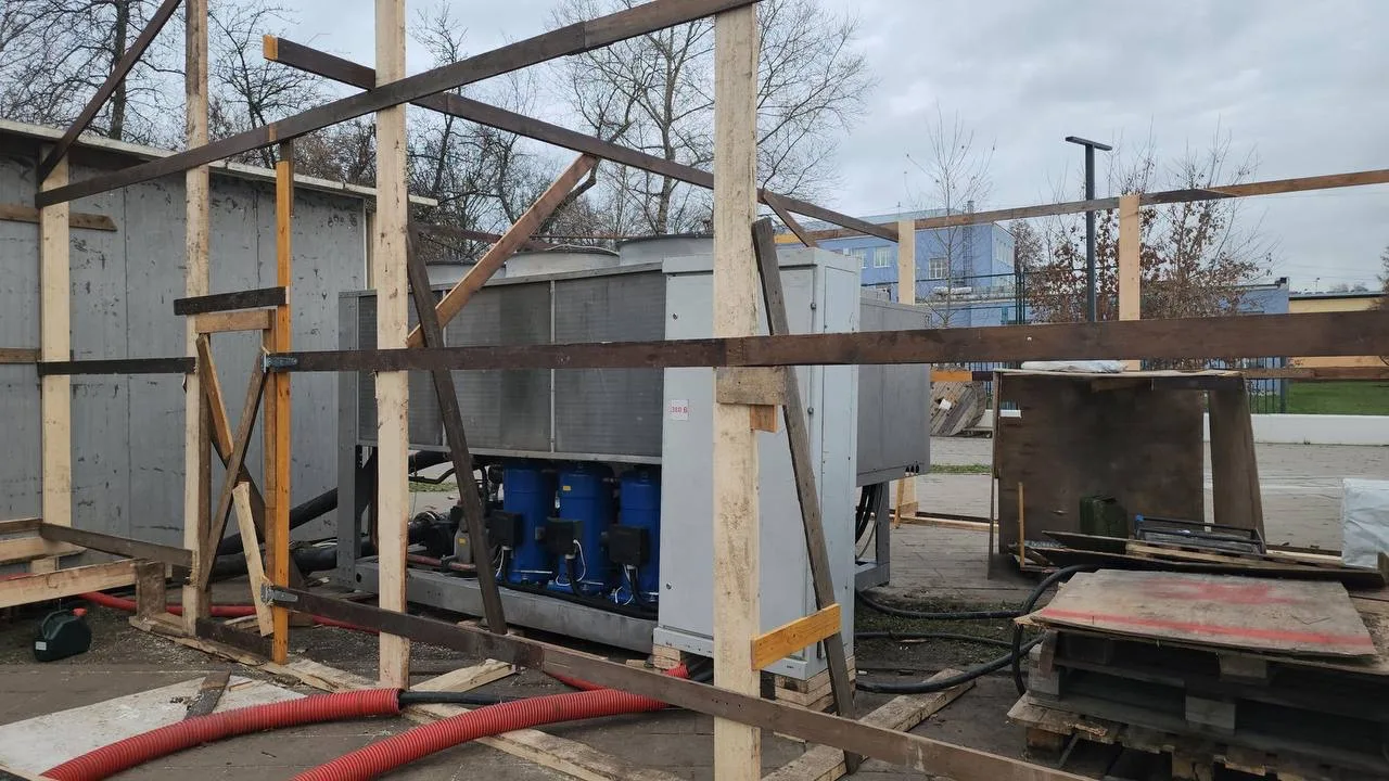Уже уложили айс-маты и привезли чиллер для стабильного льда. Работы планируют завершить к 1 декабря — скоро можно будет кататься.