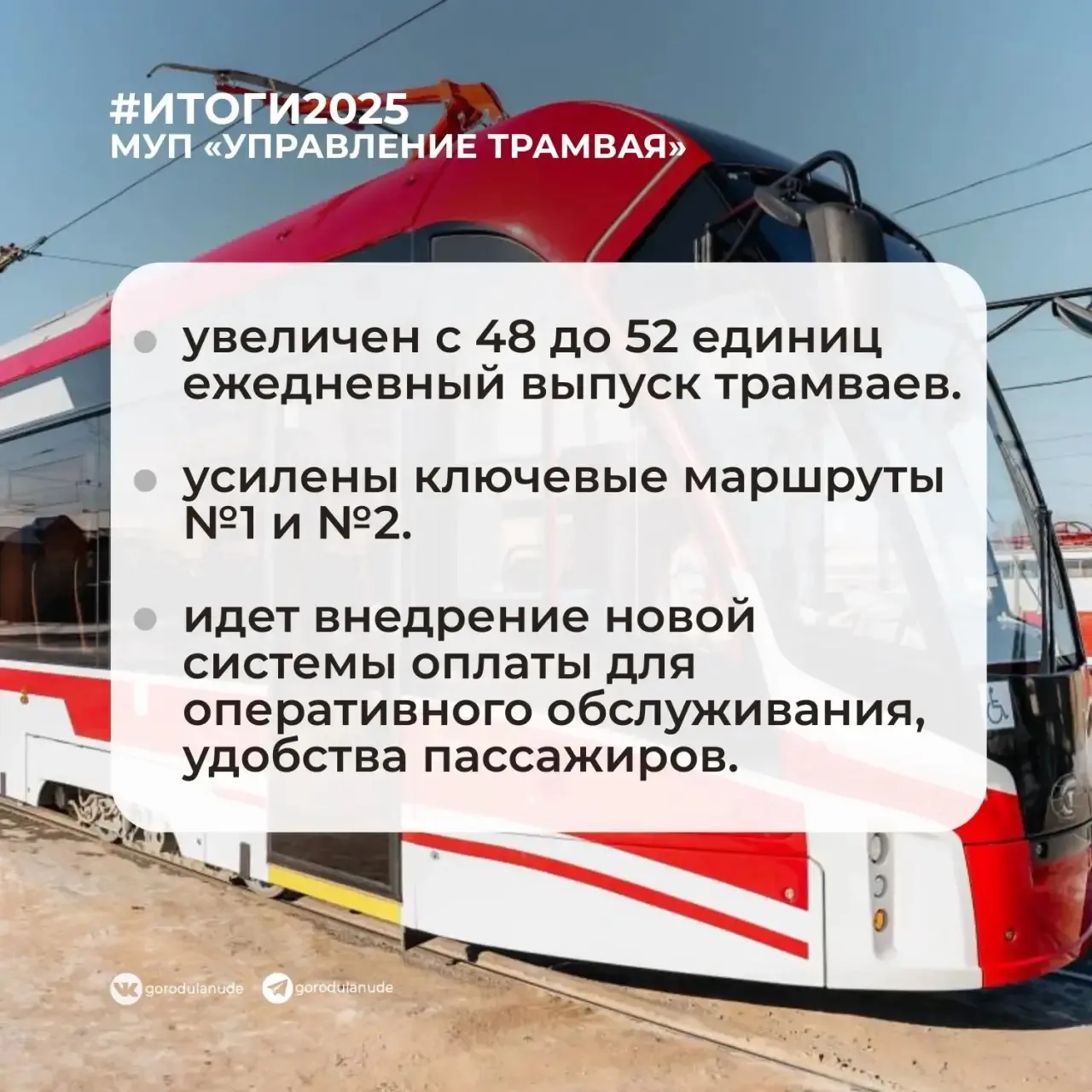 ✅ Увеличена доступность этого вида общественного транспорта: число ежедневно выпускаемых трамваев повысили с 48 до 52 единиц.
