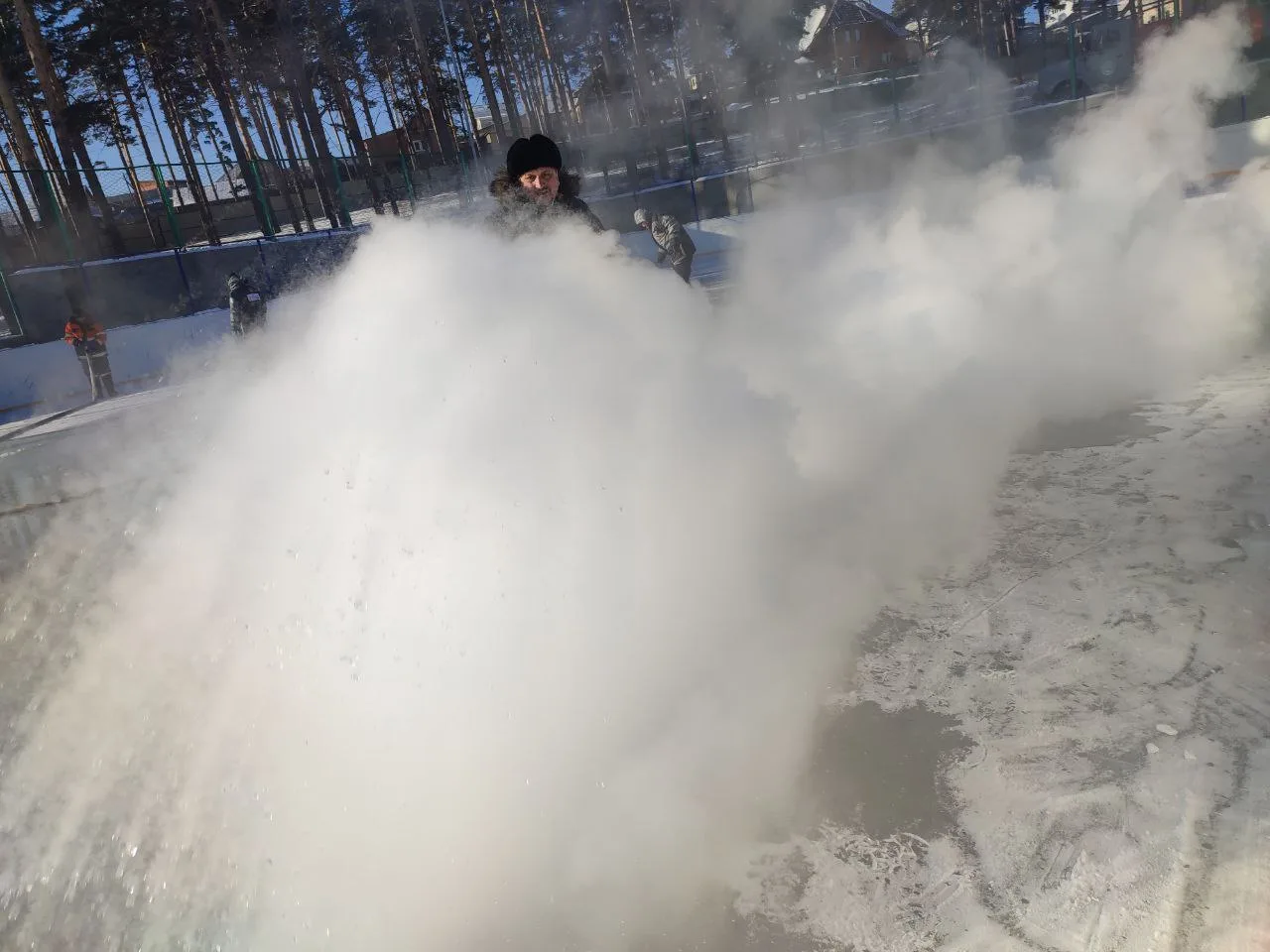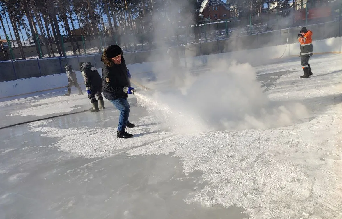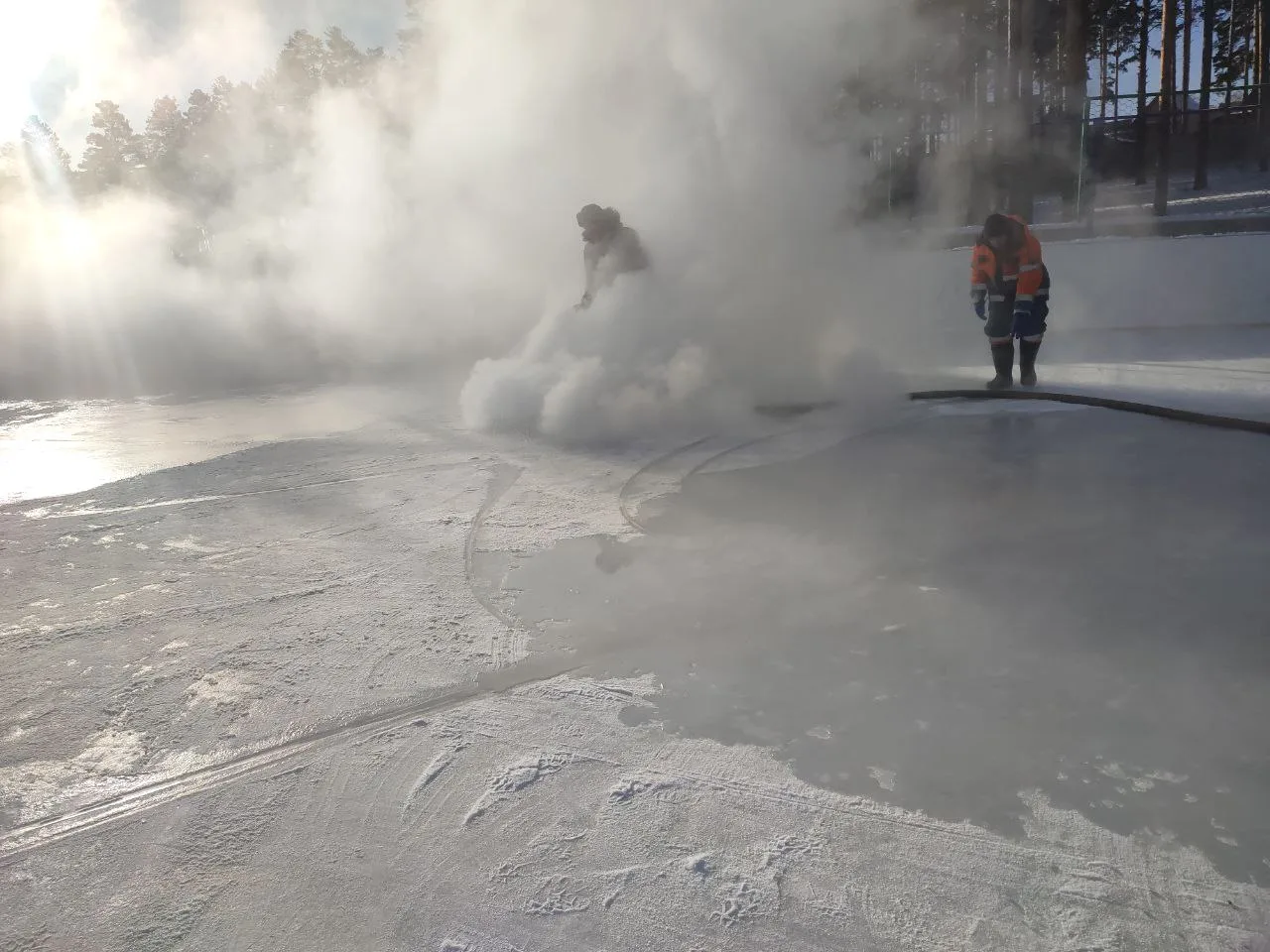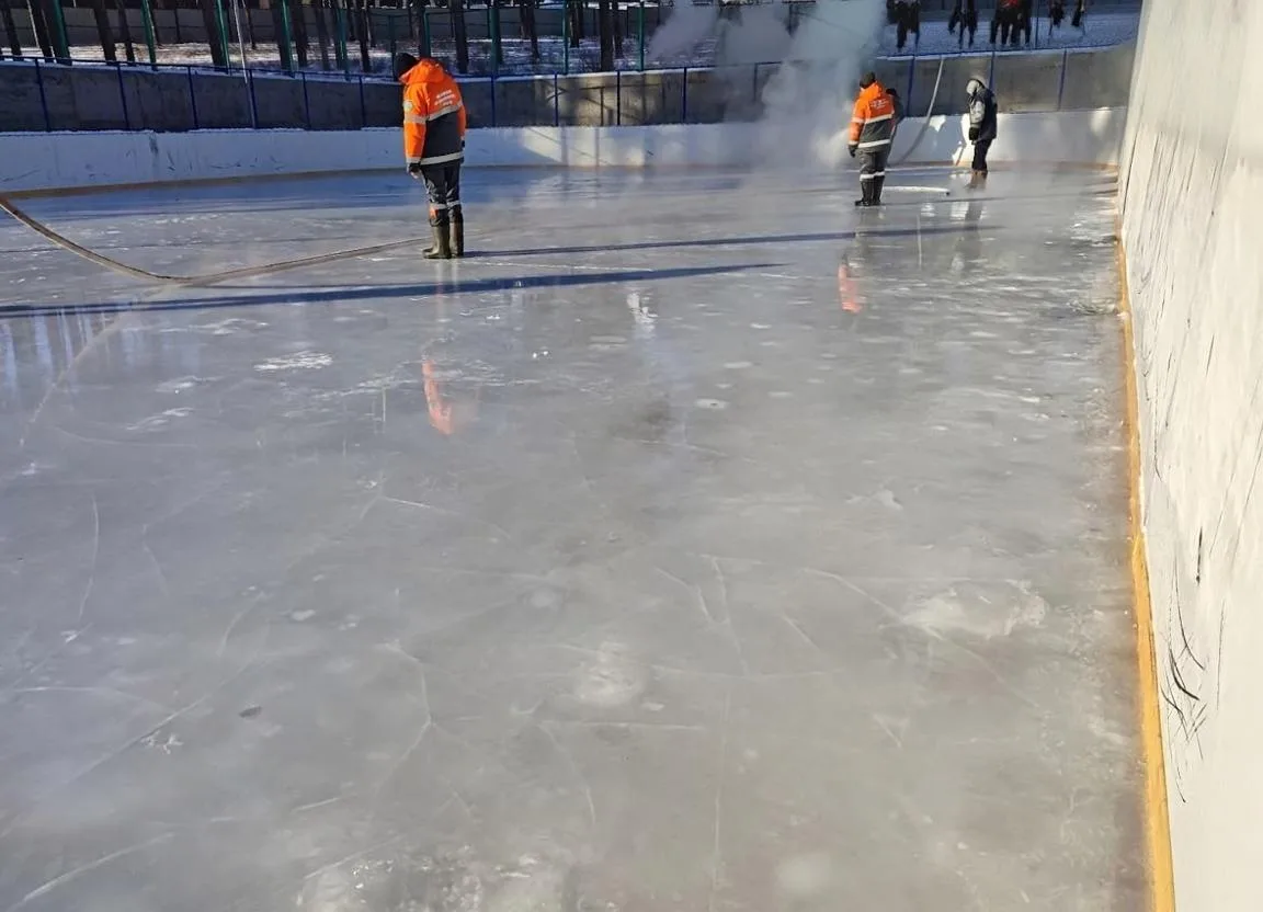 На катке школы №13 прошла финальная заливка льда горячей водой