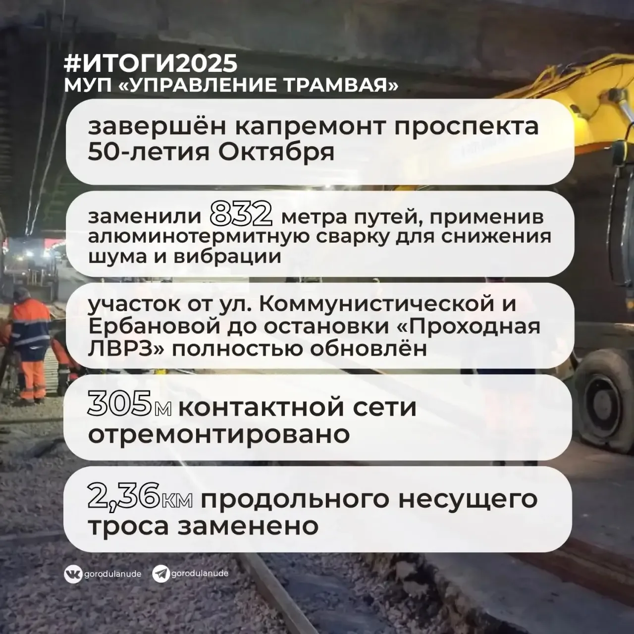 ➖ Капитально отремонтированы пути на проспекте 50-летия Октября. Заменили 832 метра с использованием современной технологии алюминотермитной сварки, значительно снижающей уровень шума и вибраций.