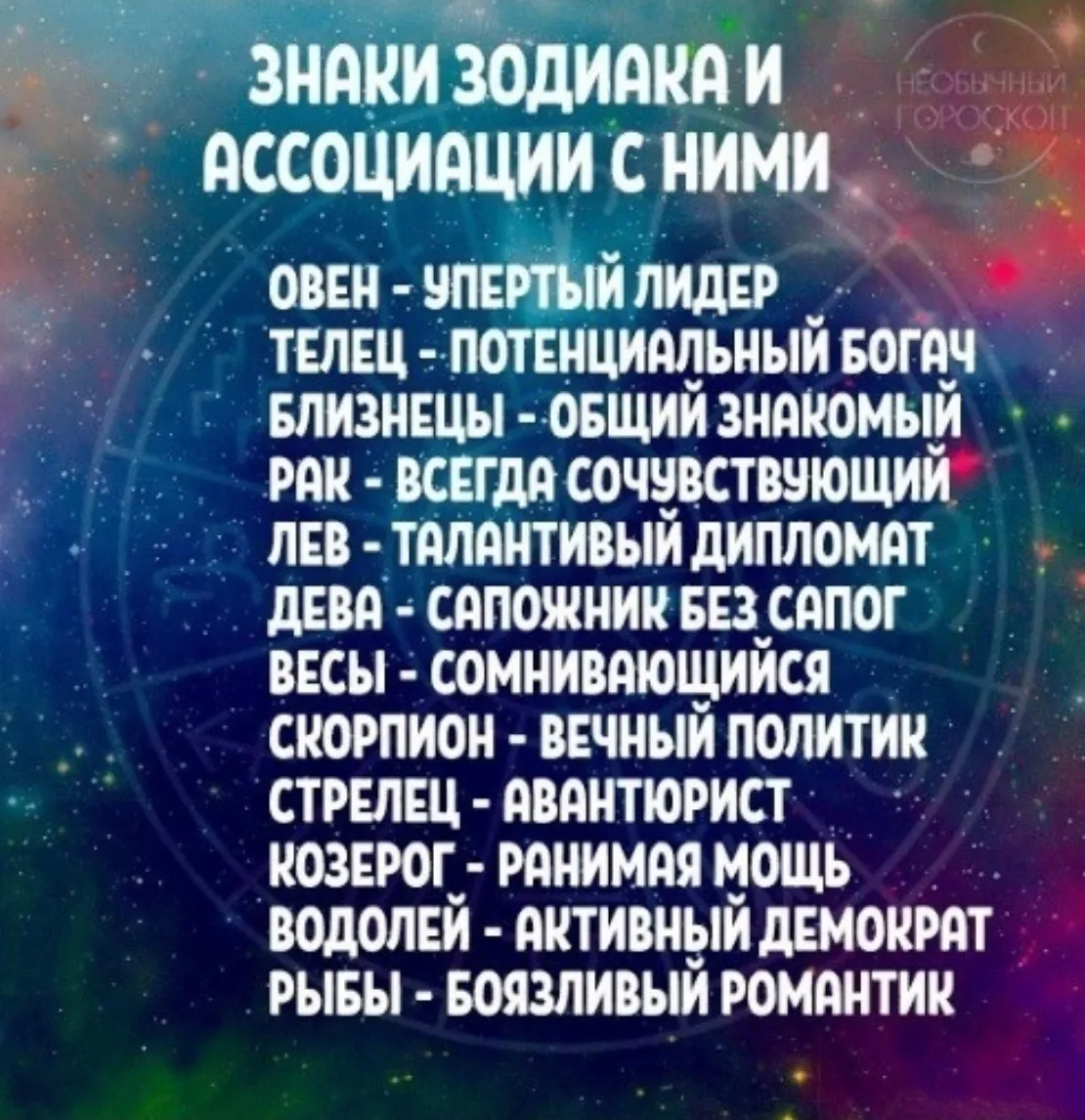 Знаки зодиака и ассоциации с ними 🌛