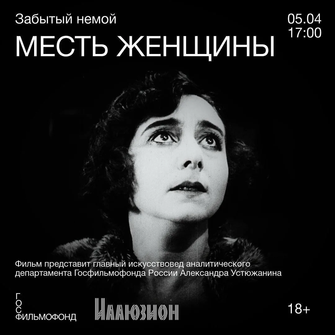 🔵17:00 — Забытый немой: «Месть женщины» // Фильм представит главный искусствовед Аналитического департамента Госфильмофонда России, киновед Александра Устюжанина // Билеты