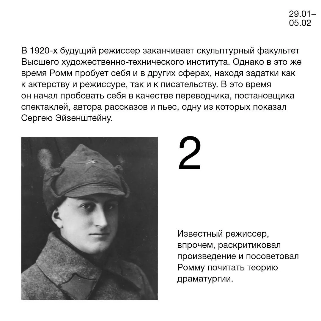 🟡10:00 — Персона. Михаил Ромм: «Ленин в 1918 году» // Вторая часть дилогии: о деятельности Ленина в первые годы Советской власти // Регистрация