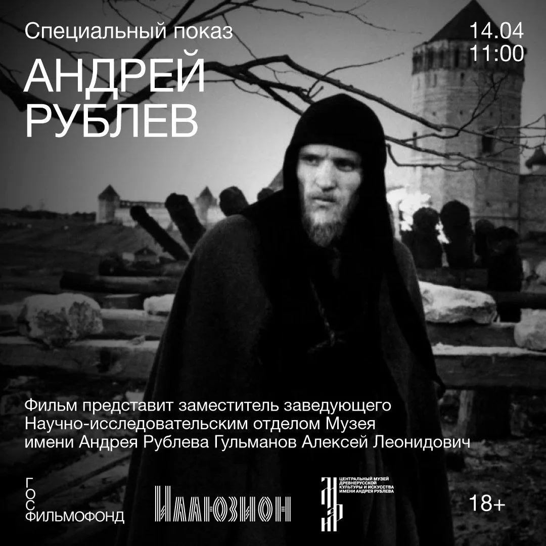 14 апреля в 11:00 в Большом зале кинотеатра «Иллюзион» состоится специальный показ философской драмы «Андрей Рублев» по специальной цене в 150 рублей.