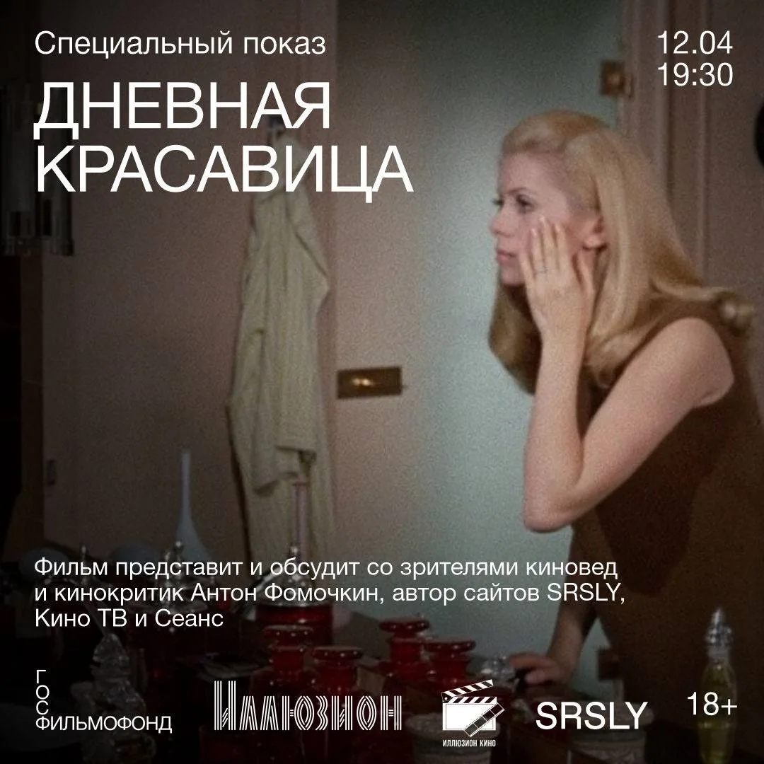 12 апреля в 19:30 состоится специальный показ самого коммерчески успешного фильма Луиса Бунюэля «Дневная красавица» ⭐