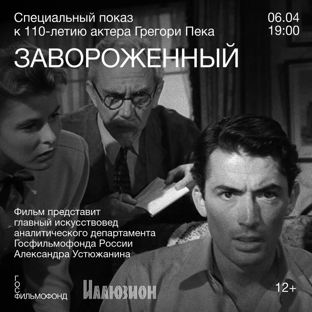 6 апреля в 19:00 состоится специальный показ фильма-нуар «Завороженный», приуроченный к 110-летию Грегори Пека — одной из самых ярких звезд в истории Голливуда 🌟