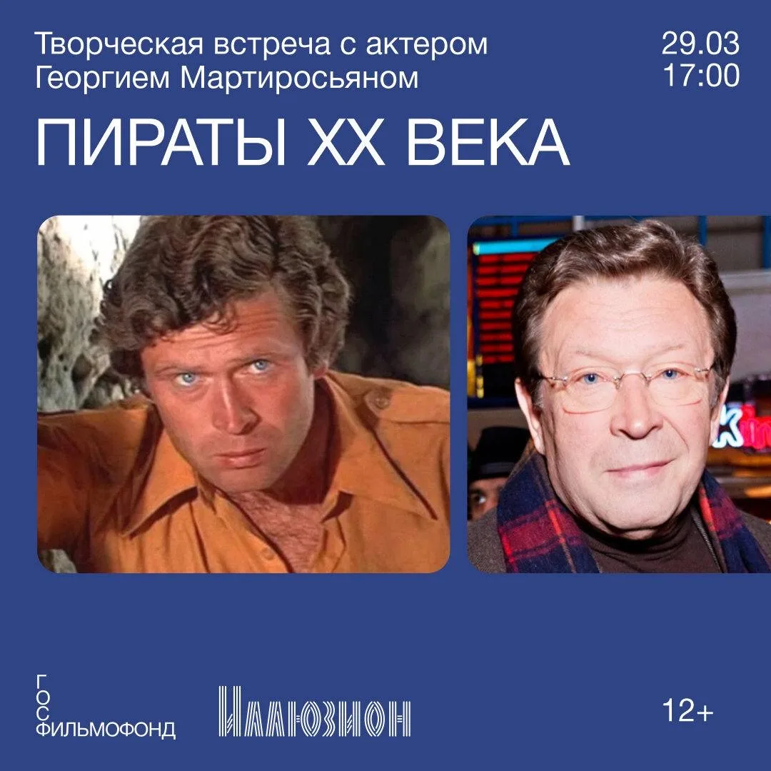 🔸 Встреча завершится показом советского блокбастера «Пираты ХХ века», в котором Георгий Мартиросьян сыграл одну из ролей.