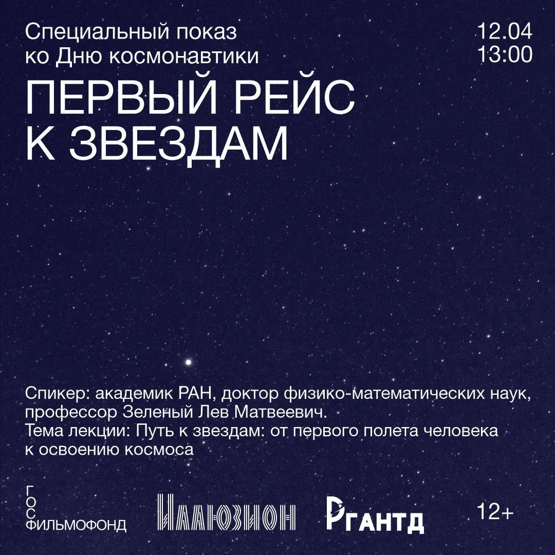 ⭐ 12 апреля в 13:00 в Большом зале кинотеатра «Иллюзион» пройдет специальный показ уникального научно-популярного фильма «Первый рейс к звездам».