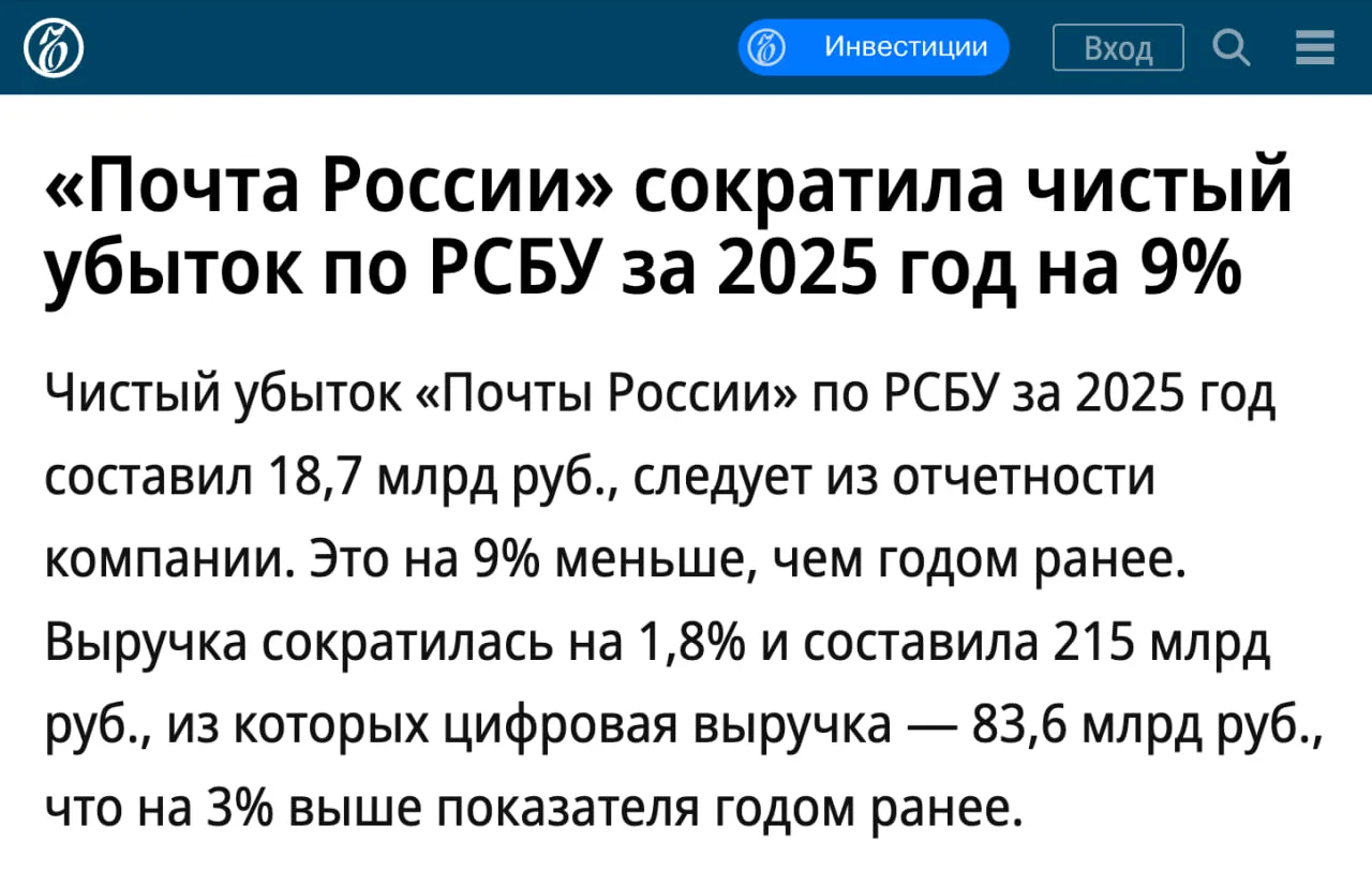 Убыток от продаж составил 14,7 млрд рублей, увеличившись на 16,6% по сравнению с 2024 годом.
